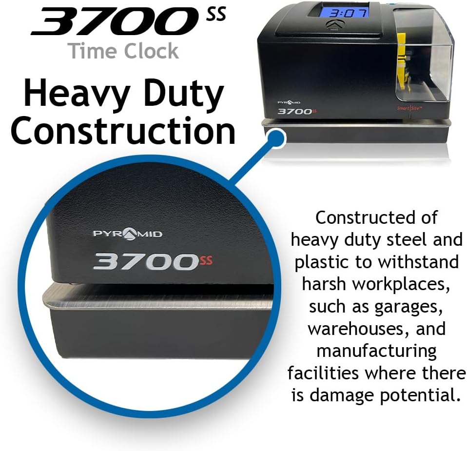 Pyramid Time Systems, 3700ss, Heavy Duty Time Clock & Document Stamp, Metal Base & Polycarbonate Cover, Includes Time Clock, 25 Time Cards, 1 Ribbon and 2 Security Keys, Time Clocks-3700 Replacement