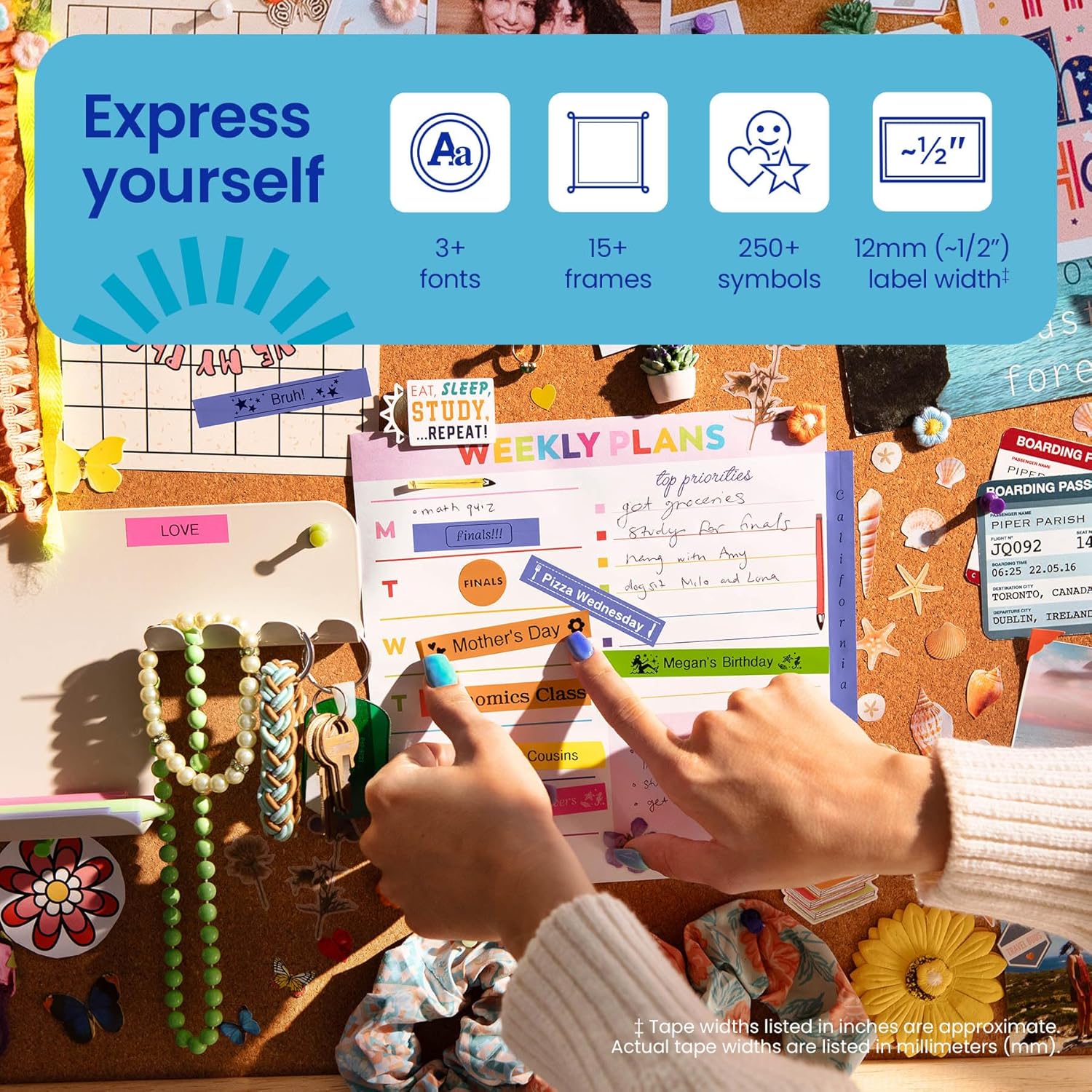 - ENDLESS EXPRESSION: Pre-loaded with 3 fonts in 7 styles including underline, italic; 15 frames, 250 symbols; free app has even more customization capability and options; prints up to two lines of text with a combined height of 9mm per label