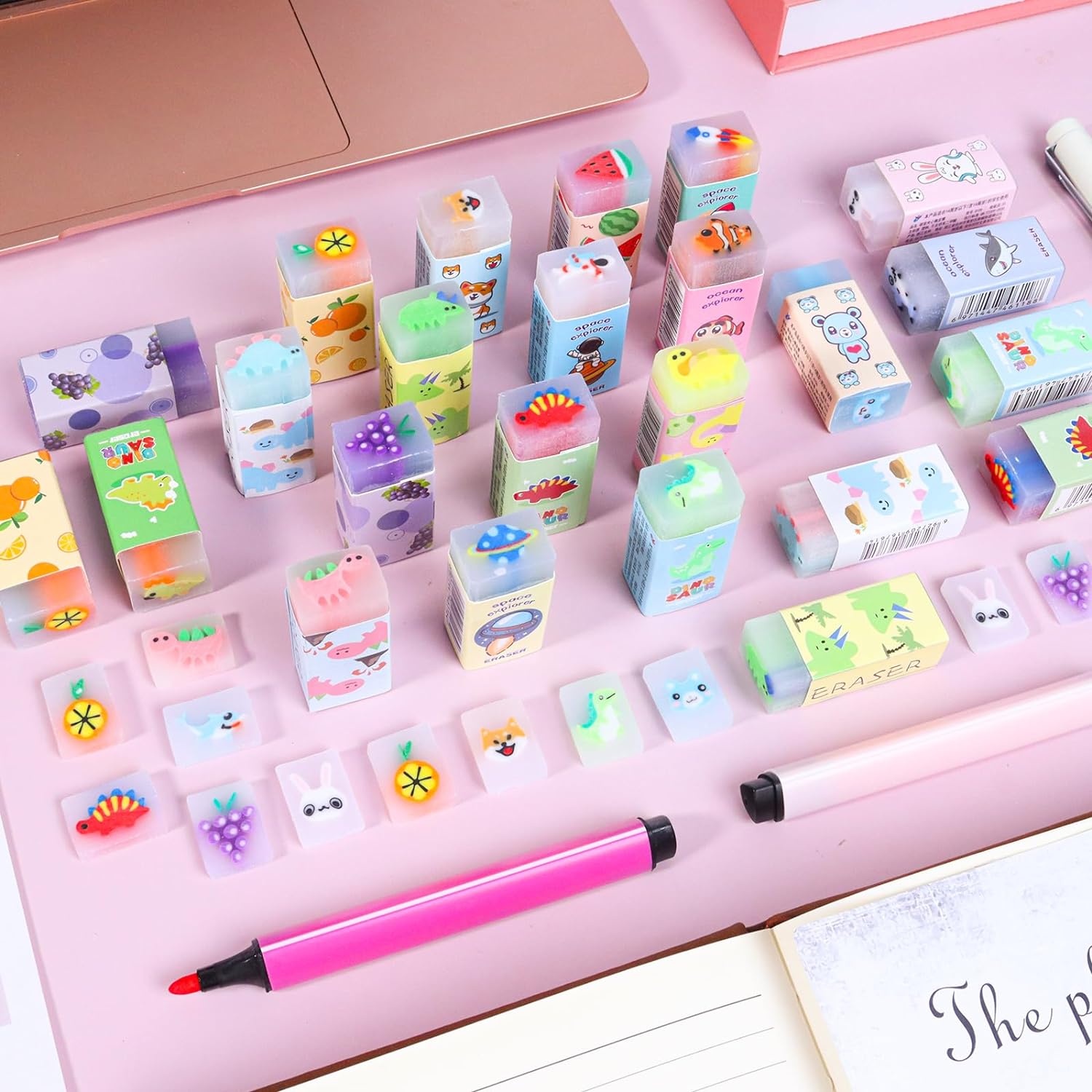 100PCS Cute Animal Erasers for Kids, Count Bulk Pack, Assorted Designs, Back to School Supplies