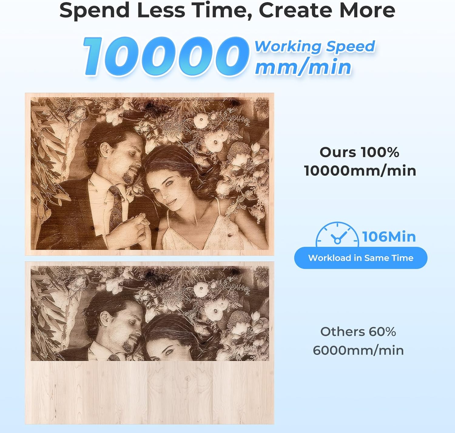 - 【Perfect for Custom Projects】Ideal for custom gifts, home décor, or starting a small business, the 5W wood engraver offers powerful performance and versatility. It handles various materials, delivering precise results for all your creative needs.