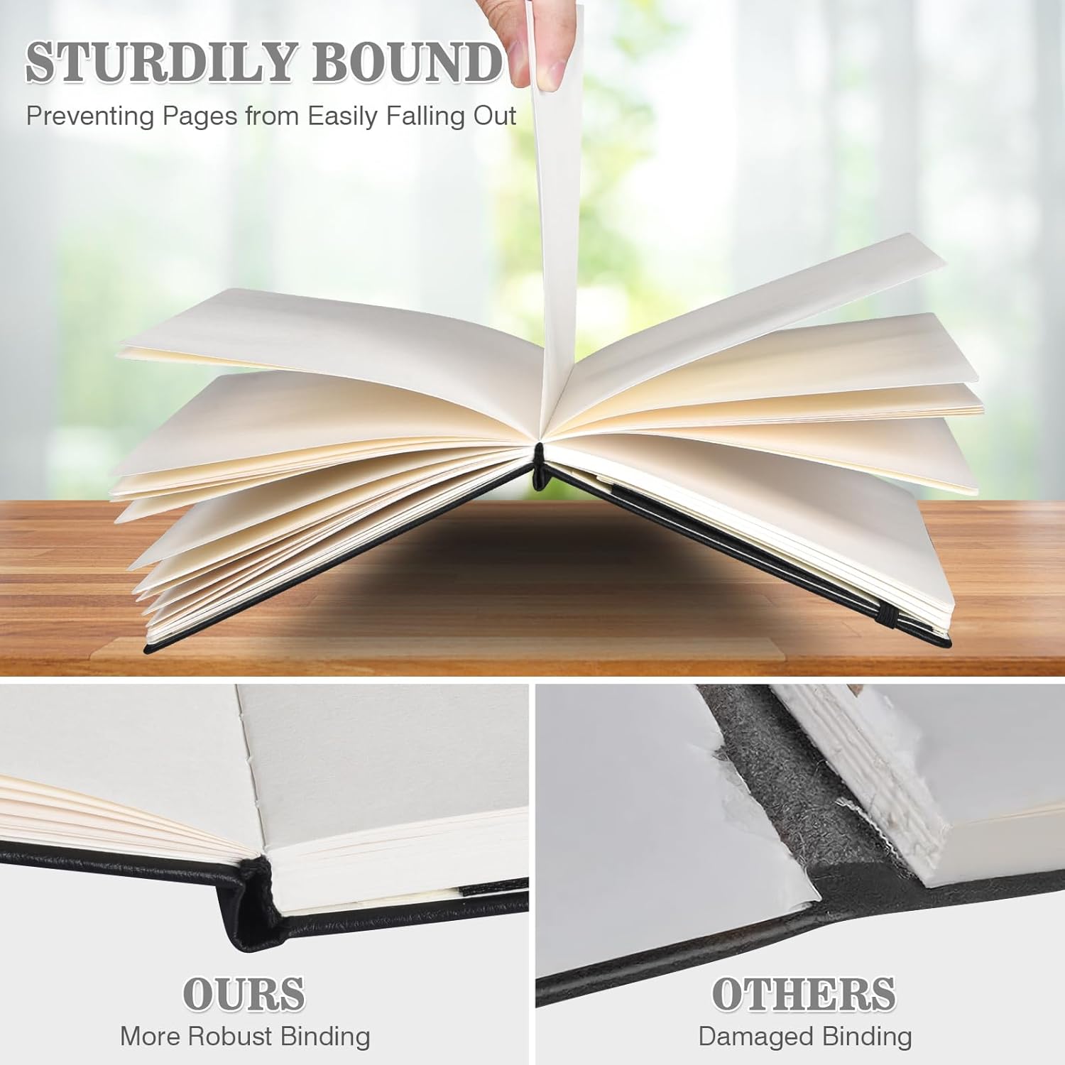 - 【3 Pack Blank Notebook】This leather notebook bulk includes 3 notebooks, offering great value for money. Each draing notebook contains 80 sheets (160 pages) , totaling 240 sheets(480 pages) across the set. The sturdy binding design guarantees the pages remain secure and will not easily come loose. Sized at a large A5 size(5.7"x 8.3"), these unlined notebooks offer a balance between portability and ample space for notes.