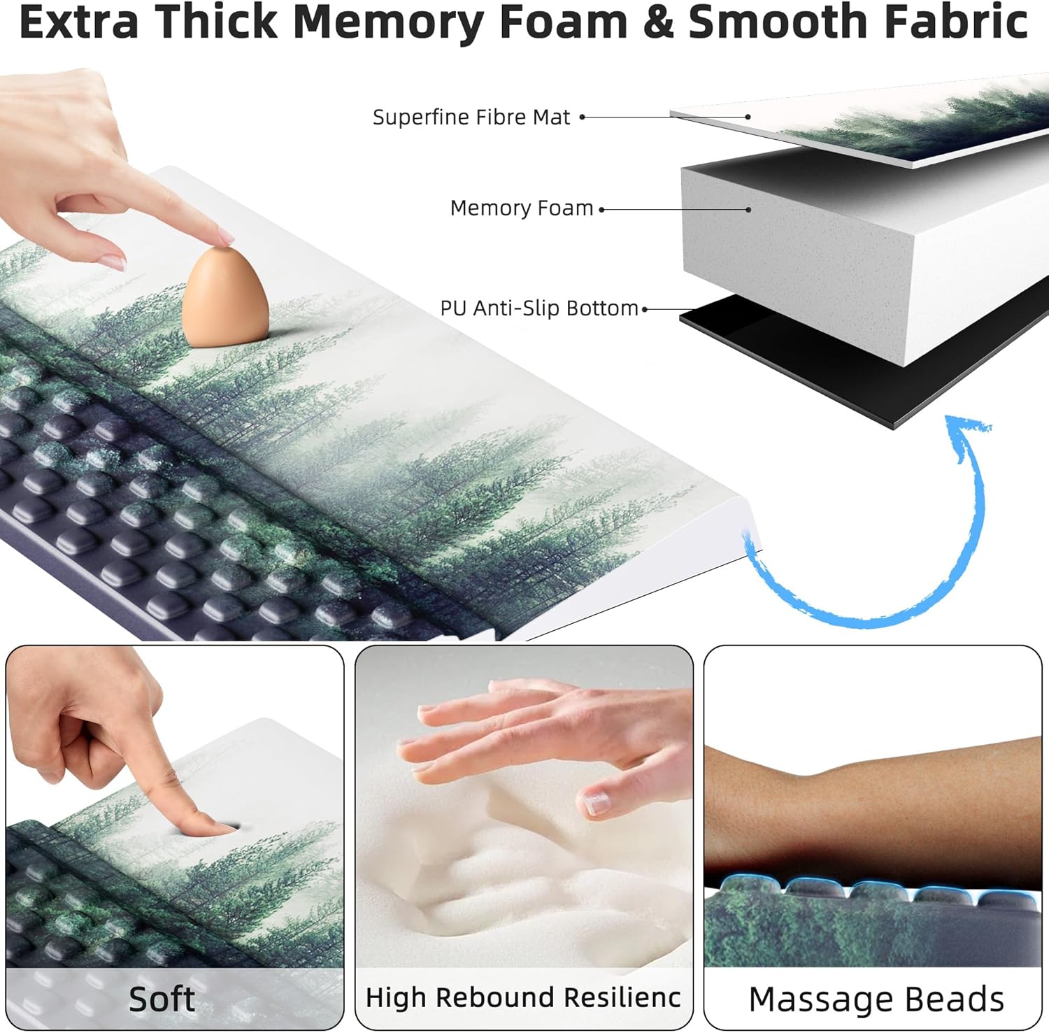 - Extra Thick Memory Foam: Provide a soft and comfortable experience while ensuring quick rebound and durability without collapsing.