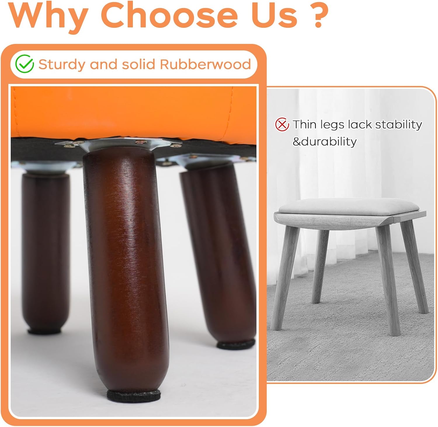 - ăAnti-Slip Designă- These leather foot stools small ottoman rubber legs come with dedicated felt pads to prevent scratches on floor and keep it from sliding.Wood leg with non-slip felt pad is quiet when moving, and can avoid leaving scratches on floor.The small footstool is perfect for small spaces and is compact enough not to get in anyone's way.