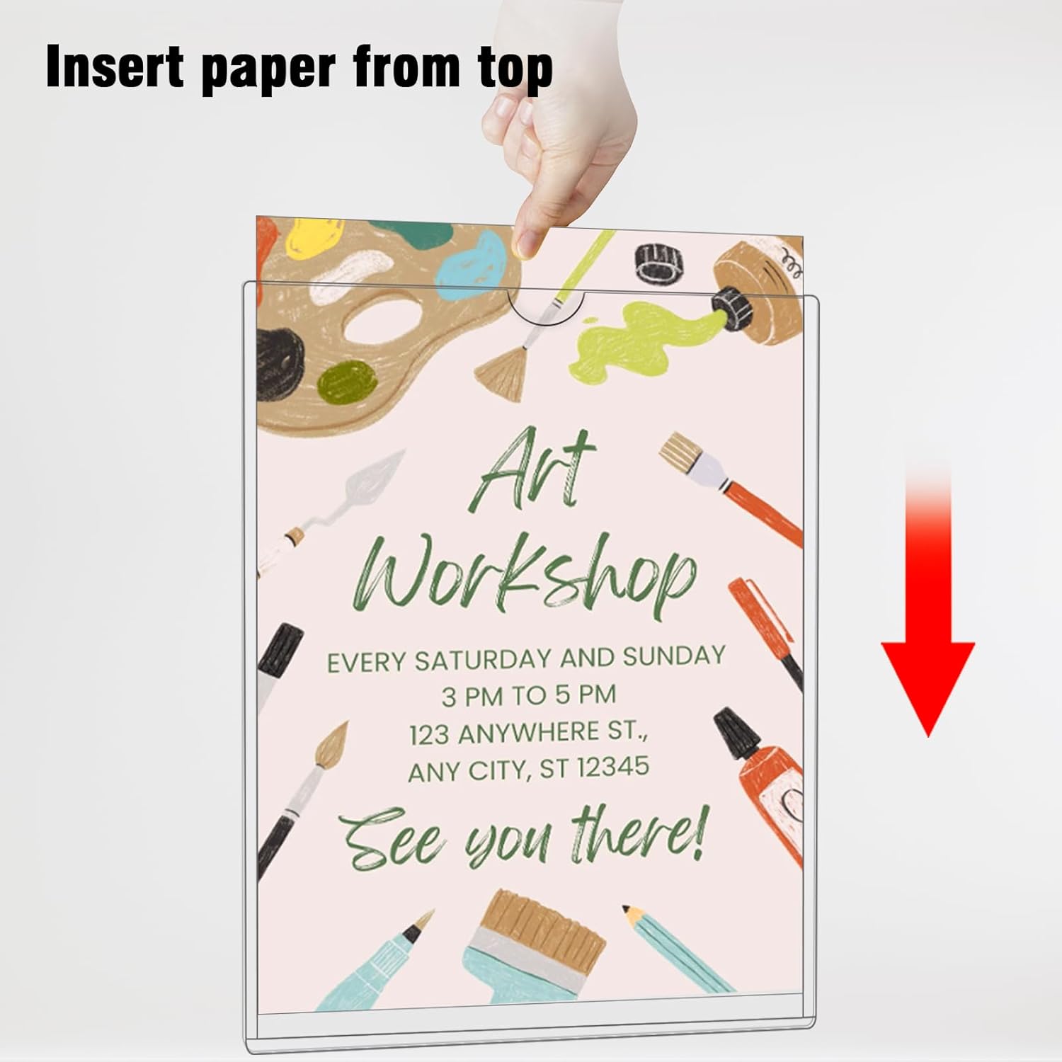 - 【Effortless Paper Changes】 The wall sign holder is designed for easy poster changes. Simply slide papers in and out from the top without removing the paper protectors from the wall, making daily changes quick and convenient.