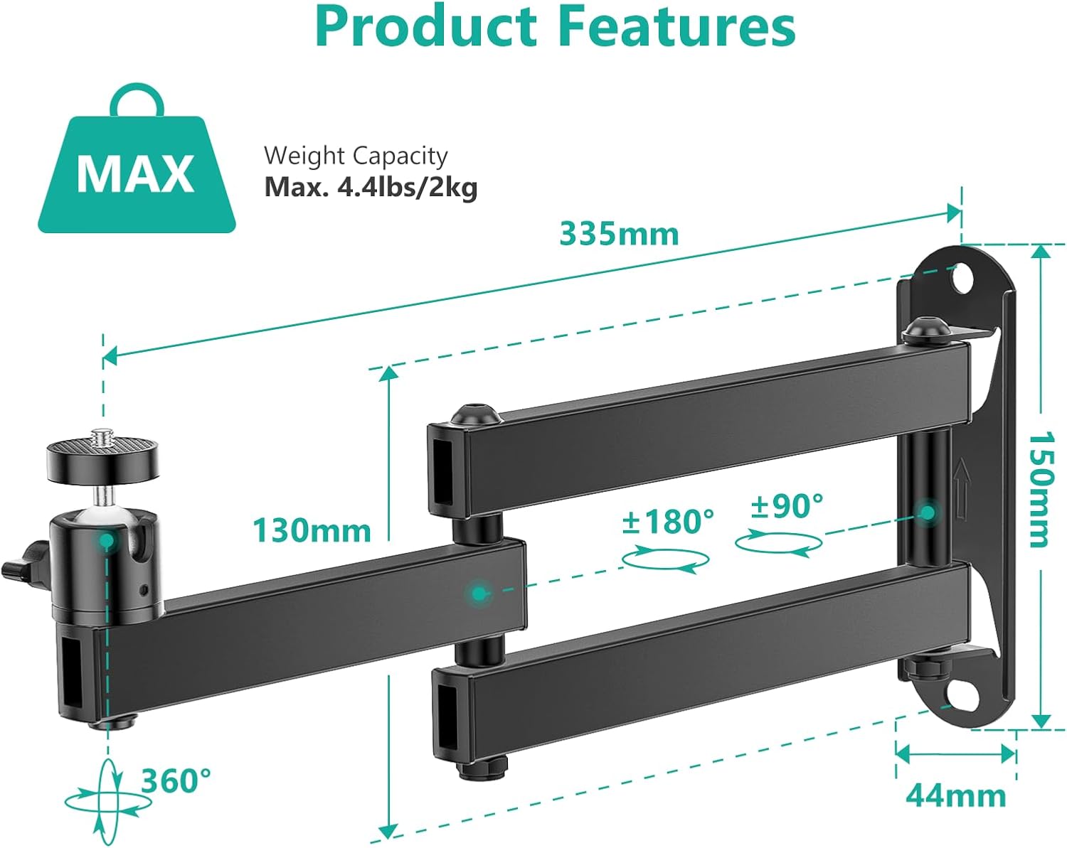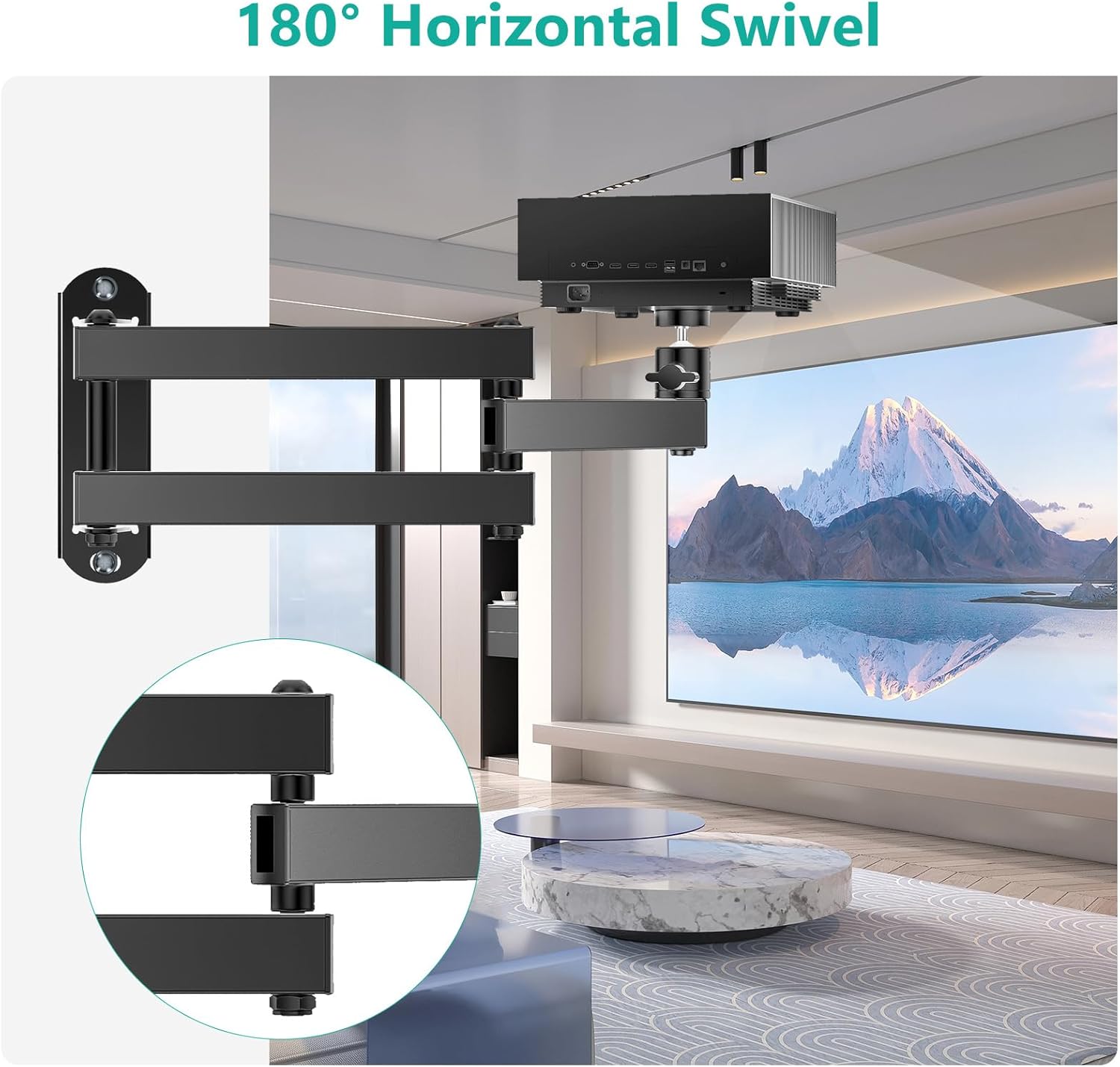 - EASY TO ADJUST: The wall mount projector stand for the projector is fully adjustable with tilt +/- 180 degrees and swivel +/- 180 degrees. The angle adjustment bracket allows 360 degrees of rotation