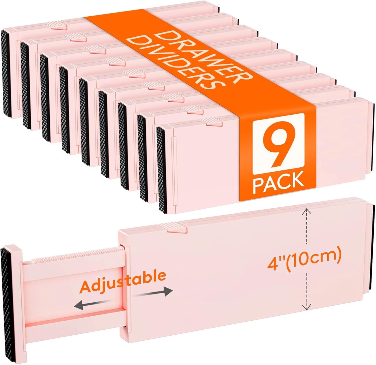 Lifewit 9 Pack Drawer Dividers 4" High, 11-17" Adjustable Drawer Organizers for Clothes, Expandable Dresser Separators in Bedroom/Bathroom/Kitchen/Fridge/Office Organization and Storage, Pink