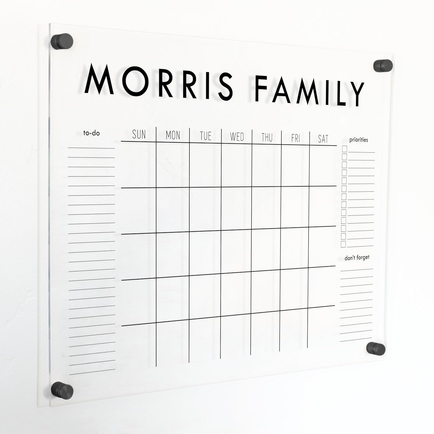 Personalized Clear Acrylic Calendar for Wall, Calendar Whiteboard for Wall, Dry Erase Wall Calendar, Wall Calendar Organizer System for Home (Block, Black, 23"W x18.5"H)
