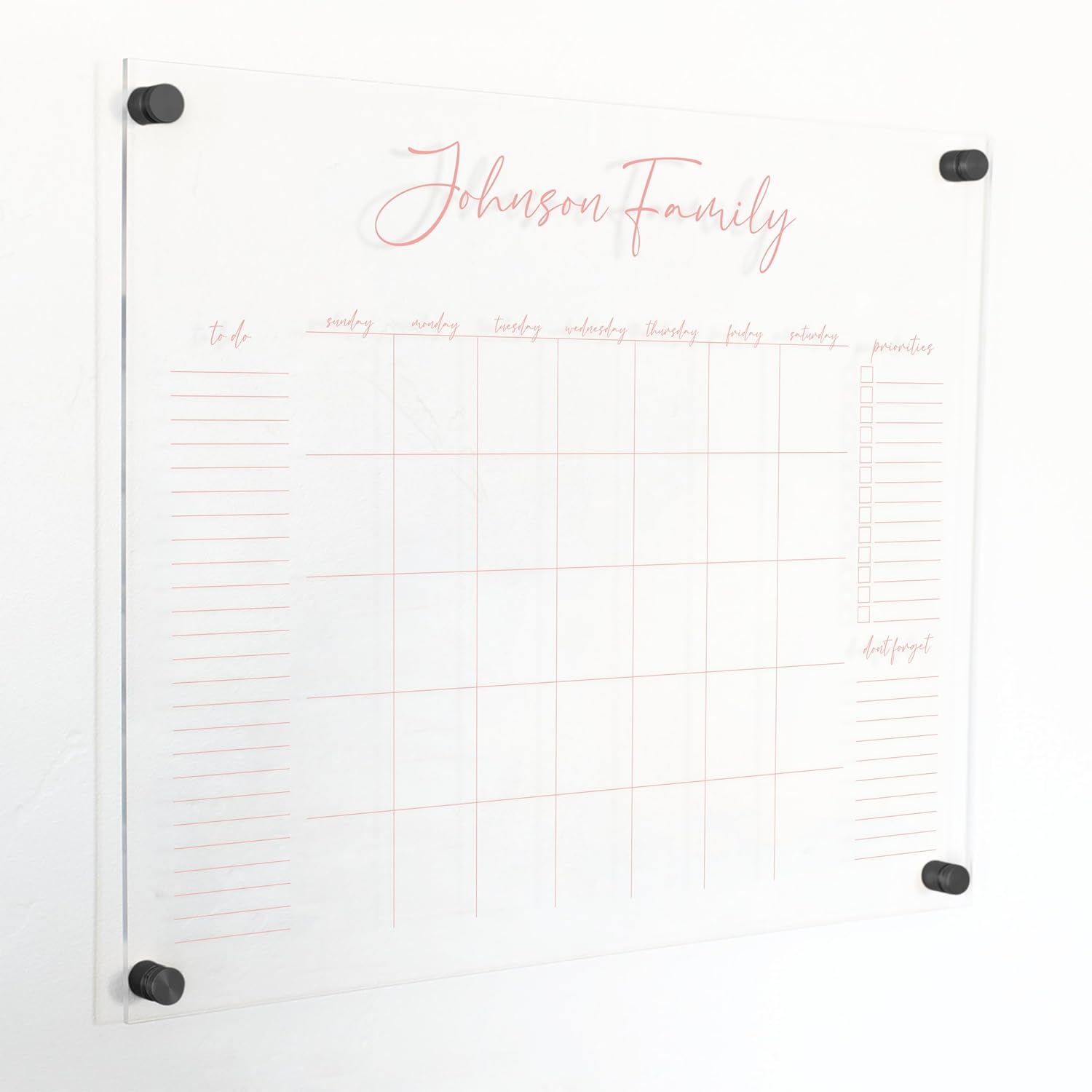 Personalized Clear Acrylic Calendar for Wall, Calendar Whiteboard for Wall, Dry Erase Wall Calendar, Wall Calendar Organizer System for Home (Cursive, Blush, 23"W x18.5"H)