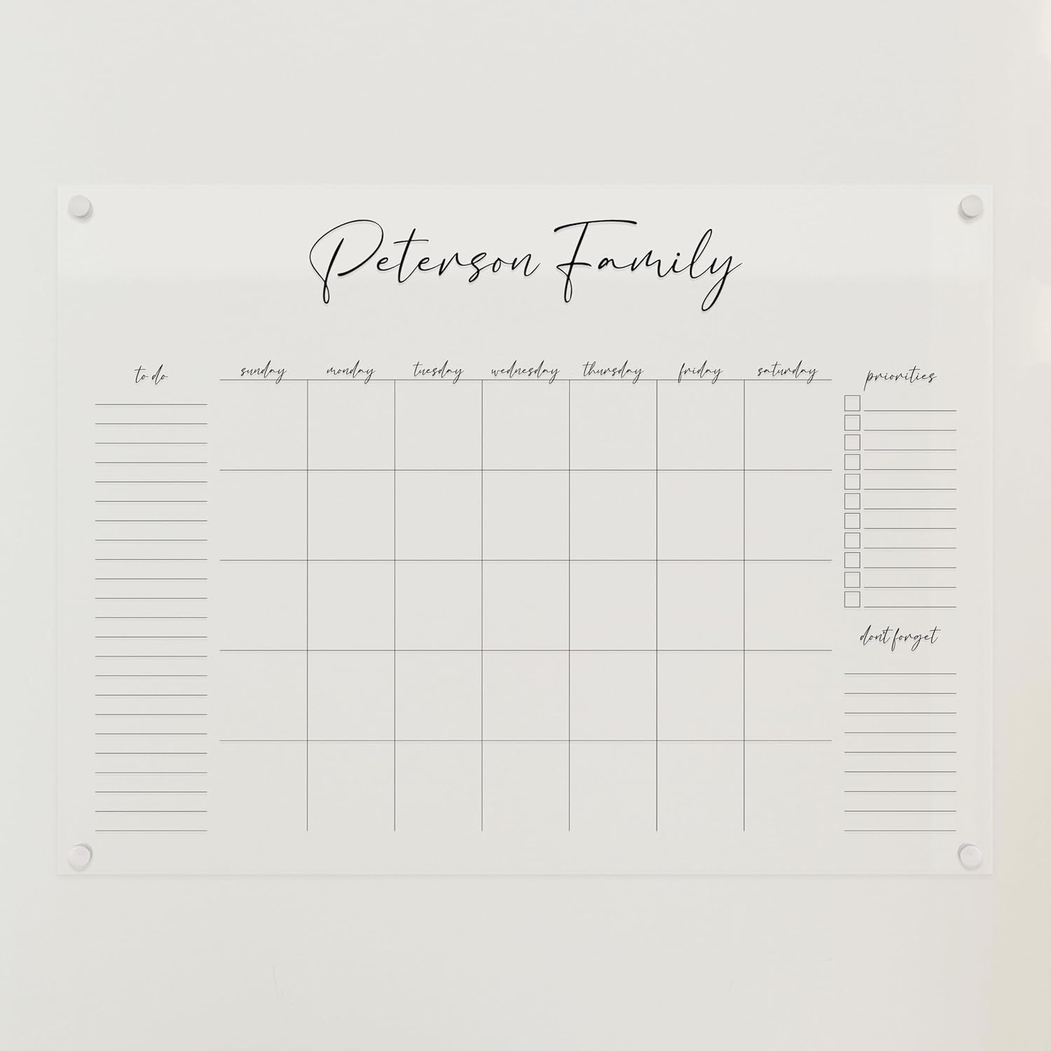 Personalized Clear Acrylic Calendar for Wall, Calendar Whiteboard for Wall, Dry Erase Wall Calendar, Wall Calendar Organizer System for Home (Cursive, Black, 31"W x 23"H)
