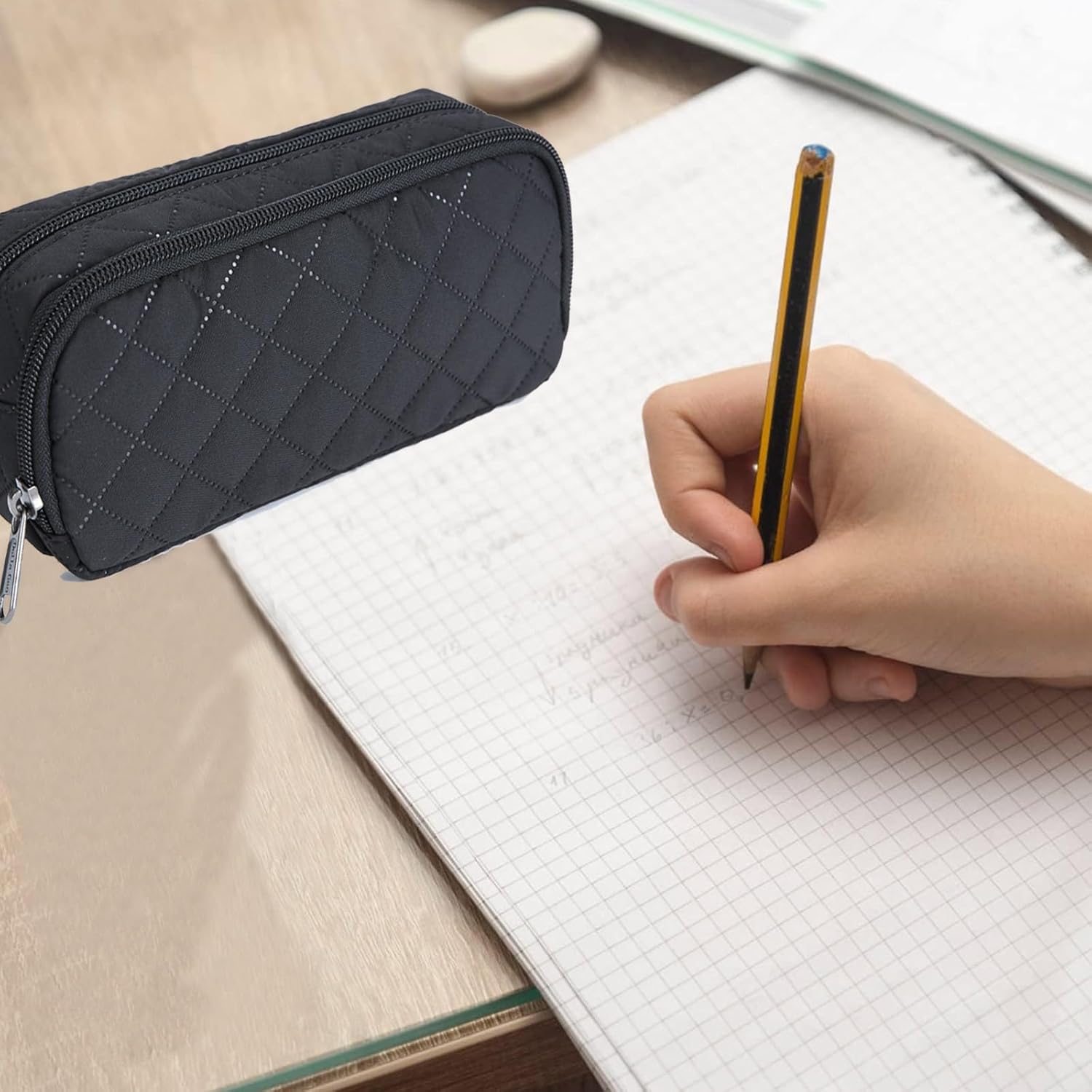 - Quality Material & Accessories:The black pencil case is made of durable lightweight nylon material, it's water-resisitant, tear-resisitant and washable.But you cannot put it in water, because the zipper are not waterproof