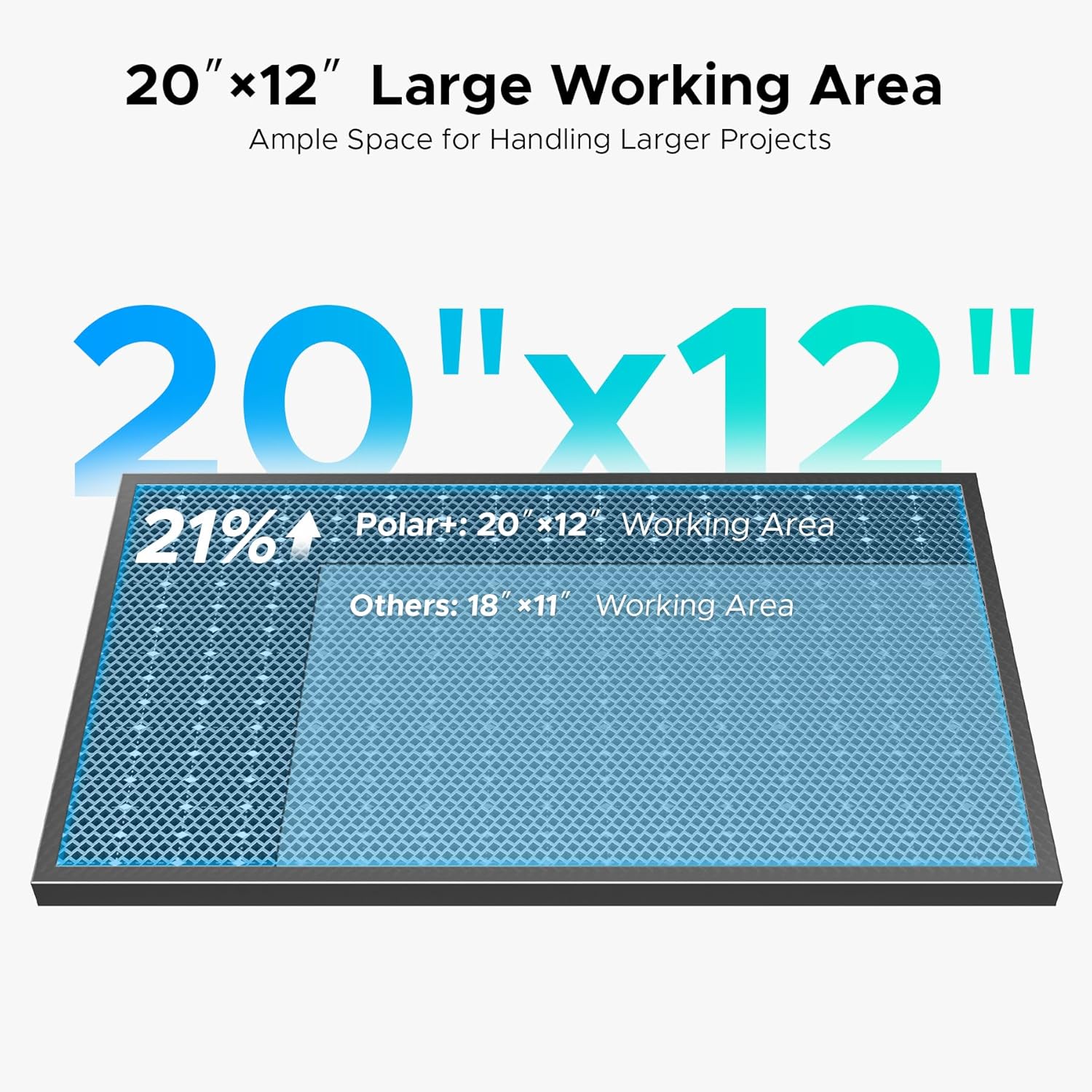 - 20"x12" Work Area & Flexibility: Boasting a 20"x12" work area—21% larger than similar models—plus front and back pass-through for materials up to 13.8"x0.24", this laser engraver accommodates larger projects with ease. The removable workbed adds even more versatility for complex tasks