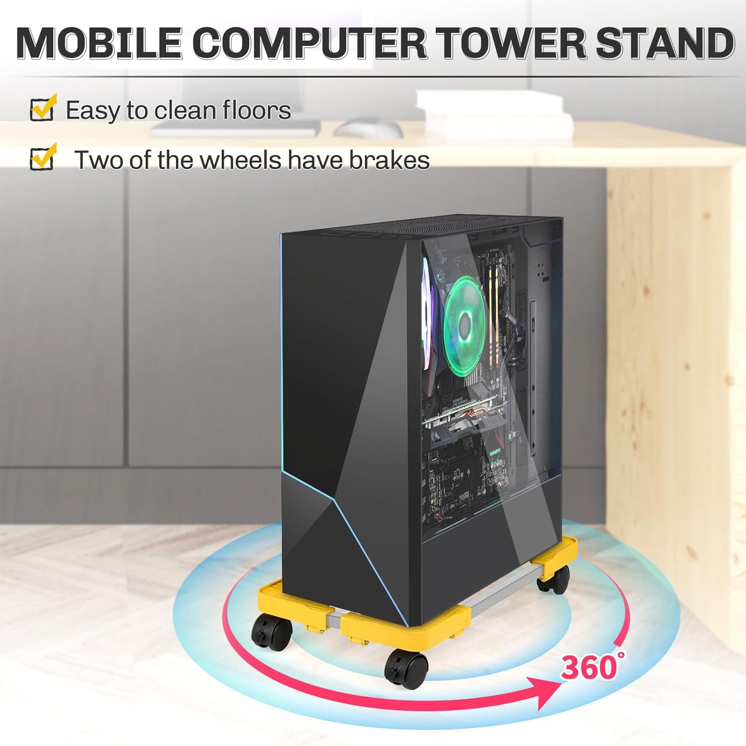 Liitrton Mobile CPU Stand, Adjustable Computer Tower Stand with 4 Locking Casters,Ventilated PC Stand for Floor with Multiple Colors, Fits Most PC Tower Under Desk Stand for Office Gamers (Yellow)