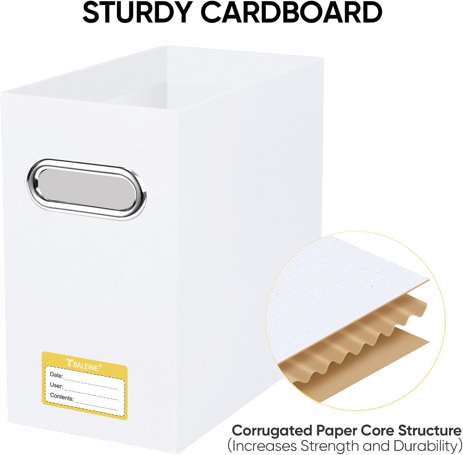 BALEINE File Organizer Box, Cardboard File Folder Organizer with Handle for Letter Size, Portable Collapsible Hanging Filing Box for Home Office Document Storage (4 Pack, White)