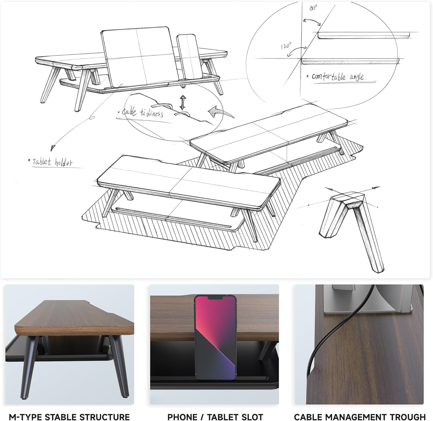 - 【Premium Durable Panel】23.6inch monitor stand is made of high-quality thickened MDF panel(0.7 inch thickness). The surface is waterproofing and also prevents marks such as scratches and fingerprints. Round corner design will not bump or scratch hands