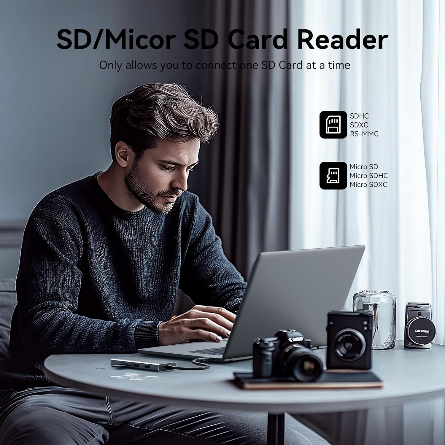 - USB A Port and SD/TF Fast Data Transfer: Lenovo docking station come with 2* USB 2. 0 ports, speed up to 480Mbps and provide more stable connection,1* USB3.0 speed up to 5Gbps. When the wireless device is interfered connected to the usb2.0 port, please connect to the wireless device to USB3.0 port. Also laptop docking station hub with SD/Micro SD card readers can conveniently transfer lots of photos from your usb-c smartphones/laptops,usb flash driver,usb/usb c hard disks