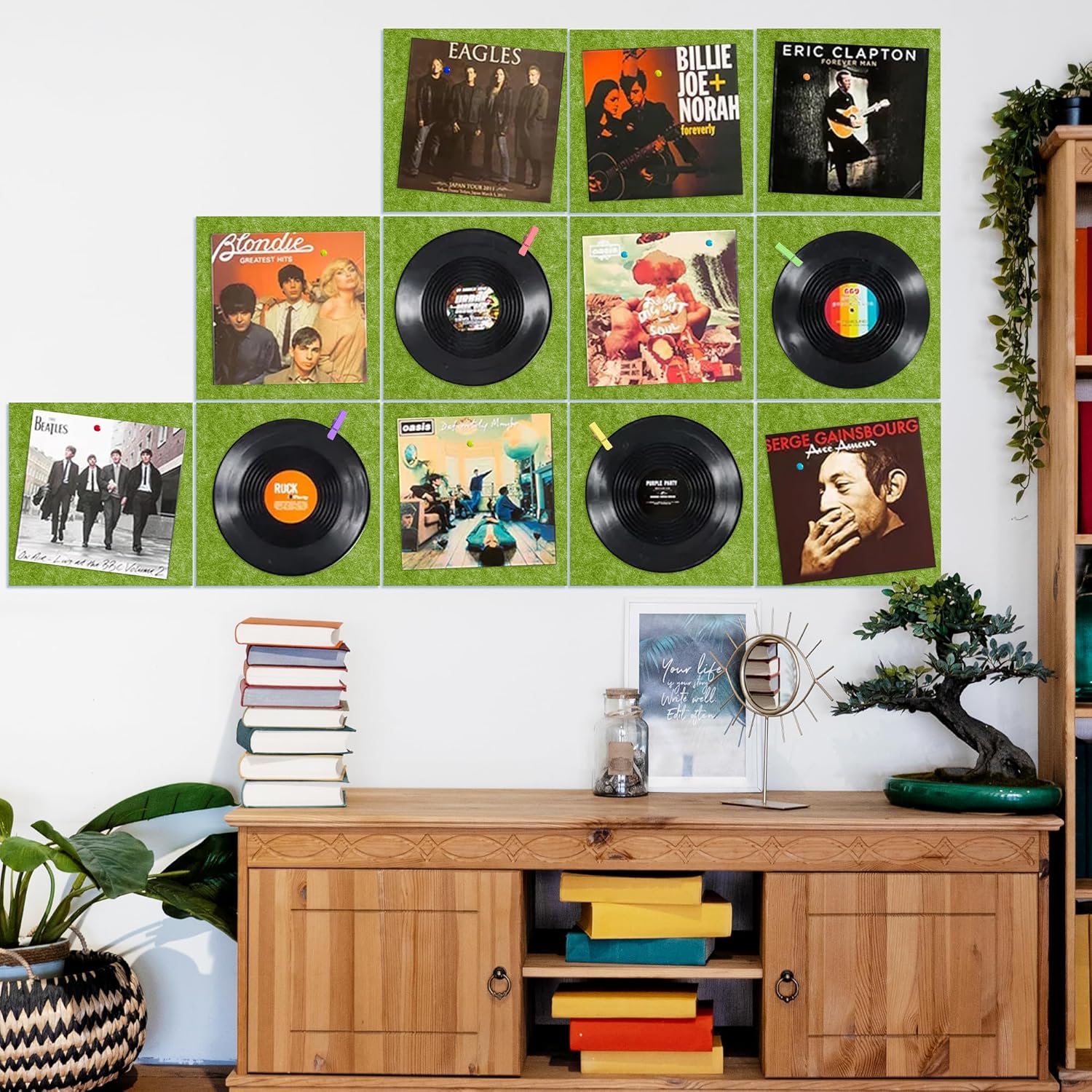 AKTOP Cork Bulletin Board 12x12, 1/2" Thick Felt Cork Board Tiles 12 Pack, Small Square Pin Board for Wall, Self Adhesive Corkboards with 120 Push Pin Wood Clips for School, Home & Office, Green