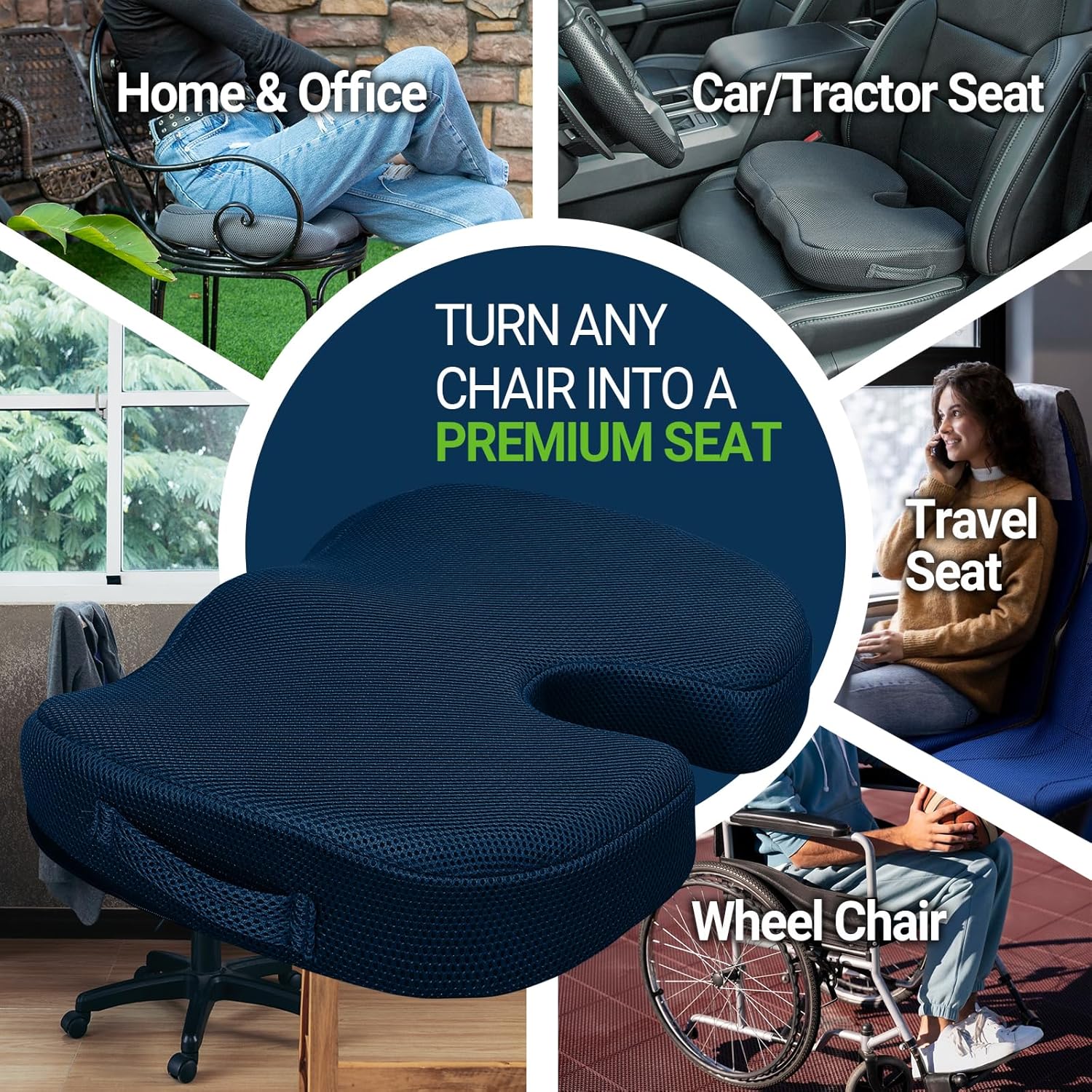 - Sciatica and Tailbone Pain Relief: Crafted to relieve sciatica, back pain, and coccyx discomfort, our gel seat cushion is ideal for those suffering from lower back and tailbone pain. The specially designed lumbar support and coccyx cushion technology enhance posture, helping reduce pain associated with extended sitting. Perfect for office chairs, car seats, or wheelchair use.