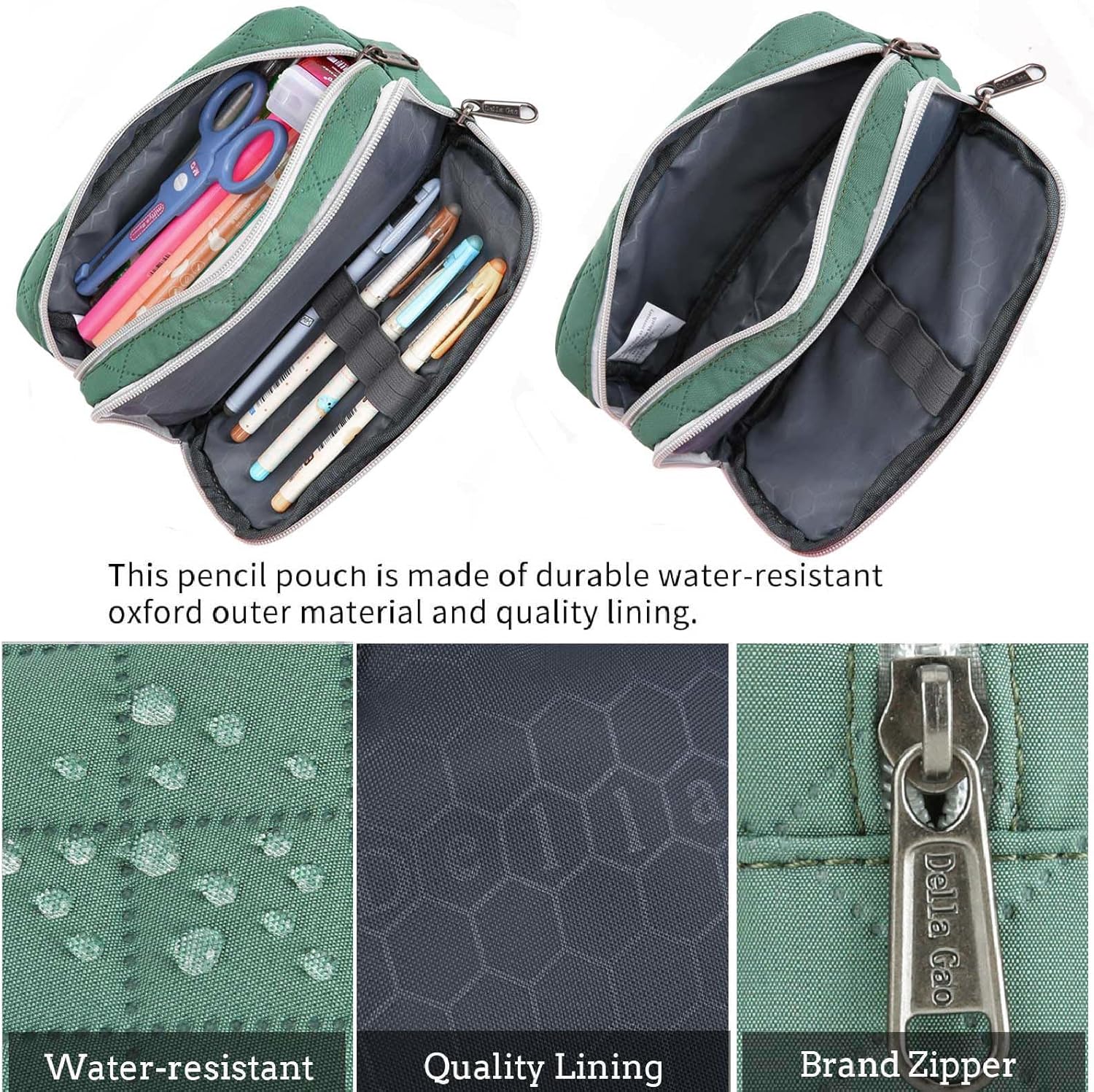 Della Gao Small Pencil Case Large Capacity Pencil Pouch Marker Pen Bag Coin Pouch Office Stationery Organizer (DarkGreen-02RH)
