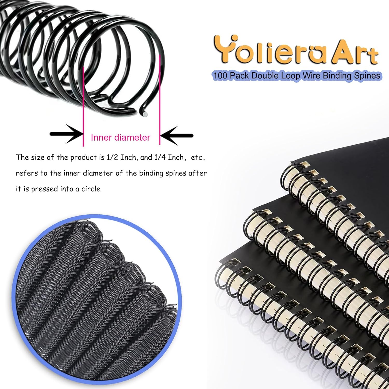 - High-Capacity Binding for Professional Use: Each YolieraArt double loop wire binding spine securely holds up to 120 sheets of standard A4 paper, ideal for thick reports, calendars, or notebooks. The metal inner wire structure ensures consistent tension to keep pages firmly aligned without shifting. With a 9/16 inches diameter and 0.8mm thickness, these spines balance flexibility and strength, supporting smooth 360-degree page rotation.