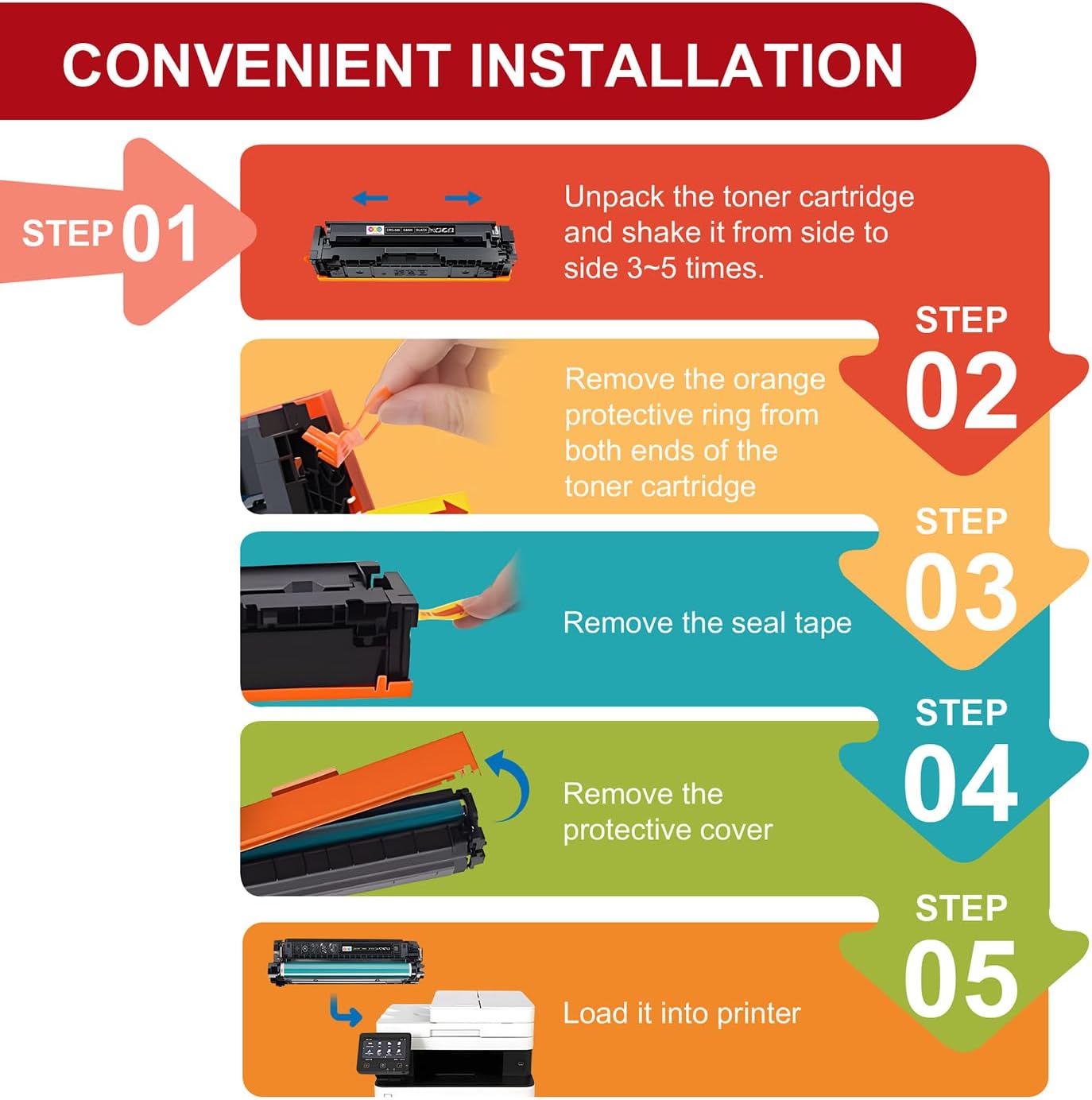 - Easy Installation & Wide Application: 046H toner ink is convenient & fast installation, which can be applied to office, school, home, bank, government, etc