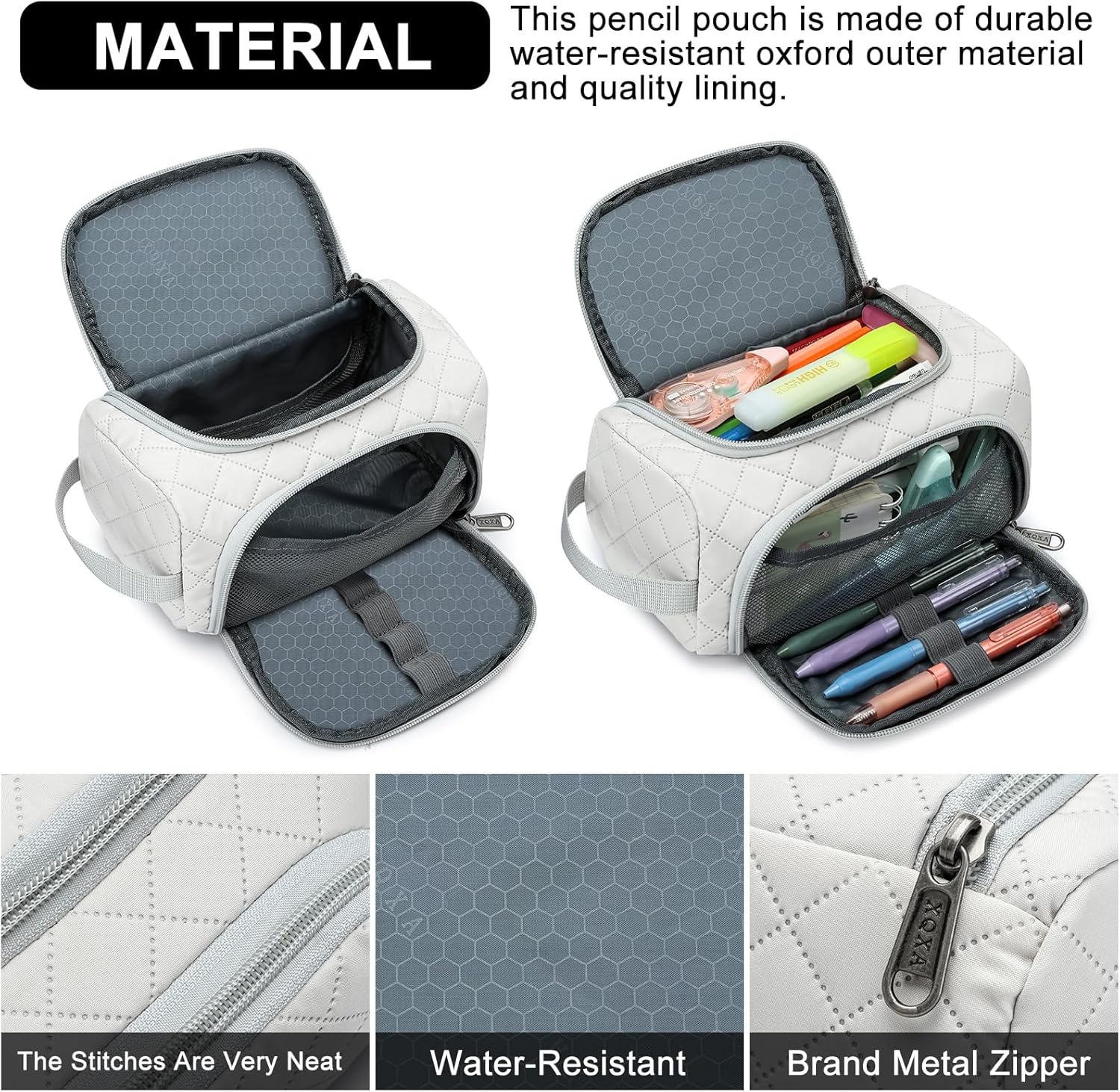 - 【Multi-Purpose Use】It's not only a pencil pouch but also can be used for other purposes. Multi-purpose as a pen, pencil, or brush case, make-up bag, personal office, and school supply case.It's a nice gift for adults, writers and artists for graduation, birthday present, or back to school or travel supplies
