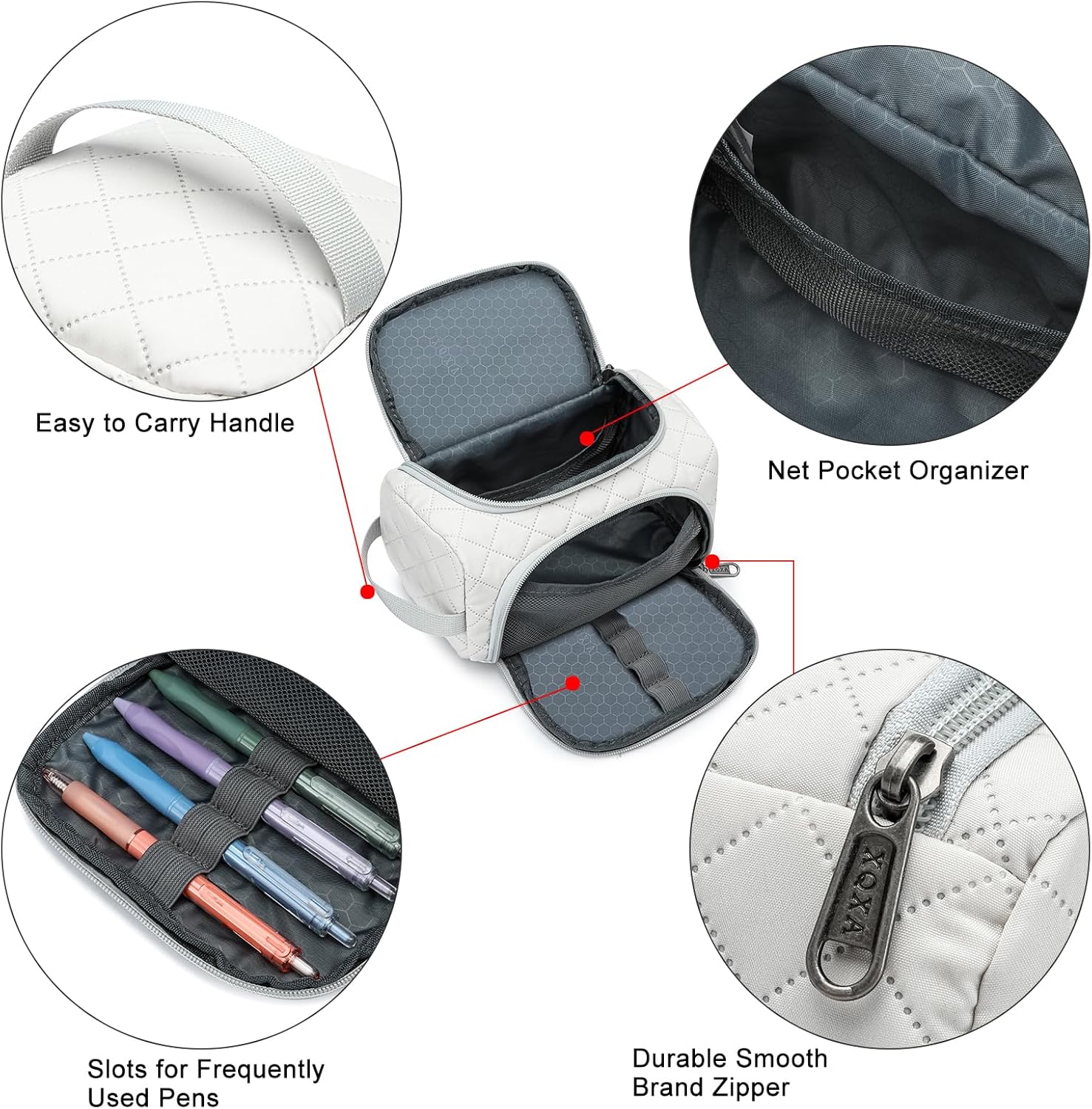 XQXA Extra Large Capacity Pencil Case Organizer, Multifunctional Pencil Pouch with Compartmens, Travel Pen Pouch Simple Stationery Pen Bag, Nylon Pencil Bag for Adults (Beige)
