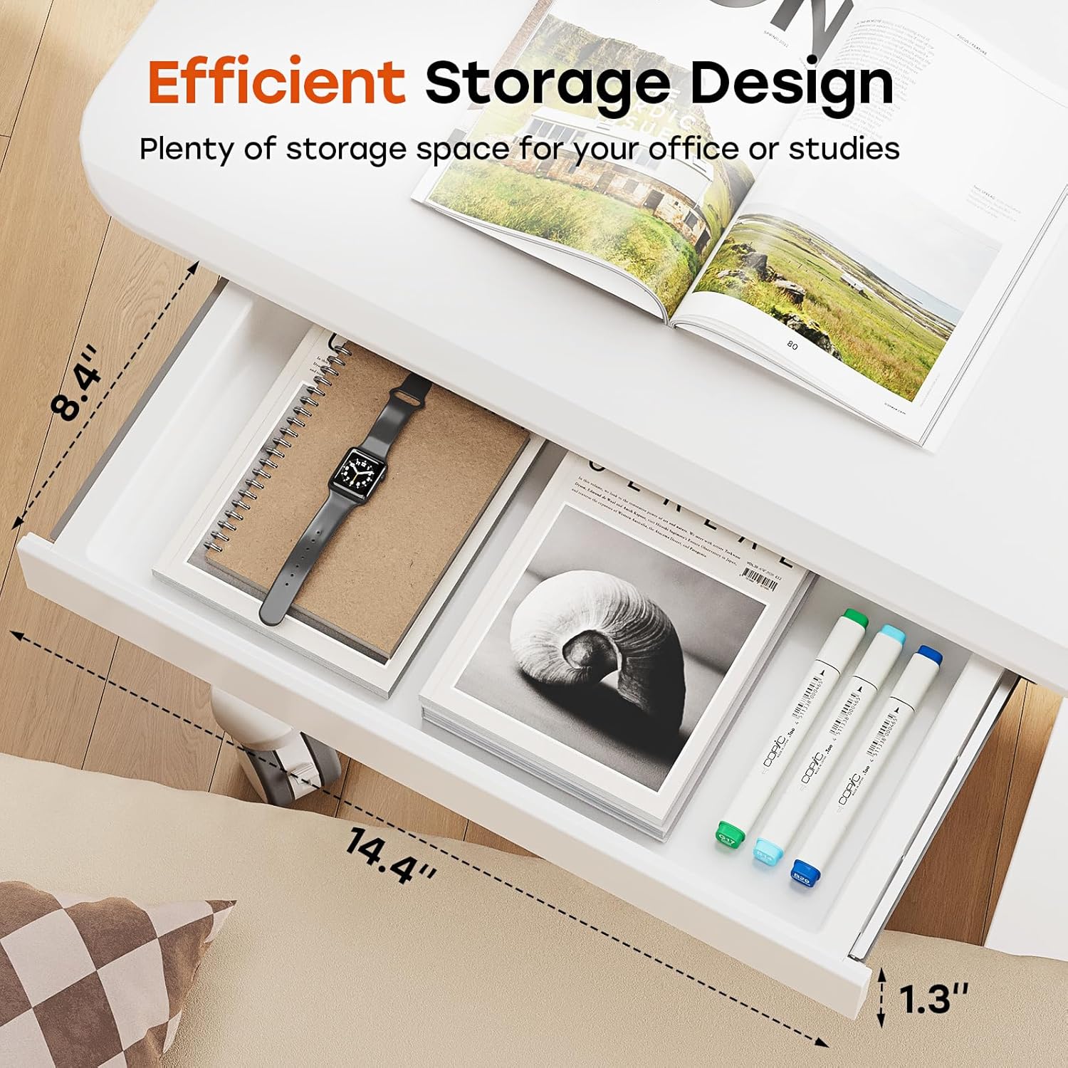 - Convenient Storage Drawer: Small standing desk features a drawer (Size: 14.4"Ă—8.4"Ă—1.3") that offers generous storage for office supplies, helping maintain a clean workspace. Additionally, 2 hooks design facilitates organization of headset or backpack
