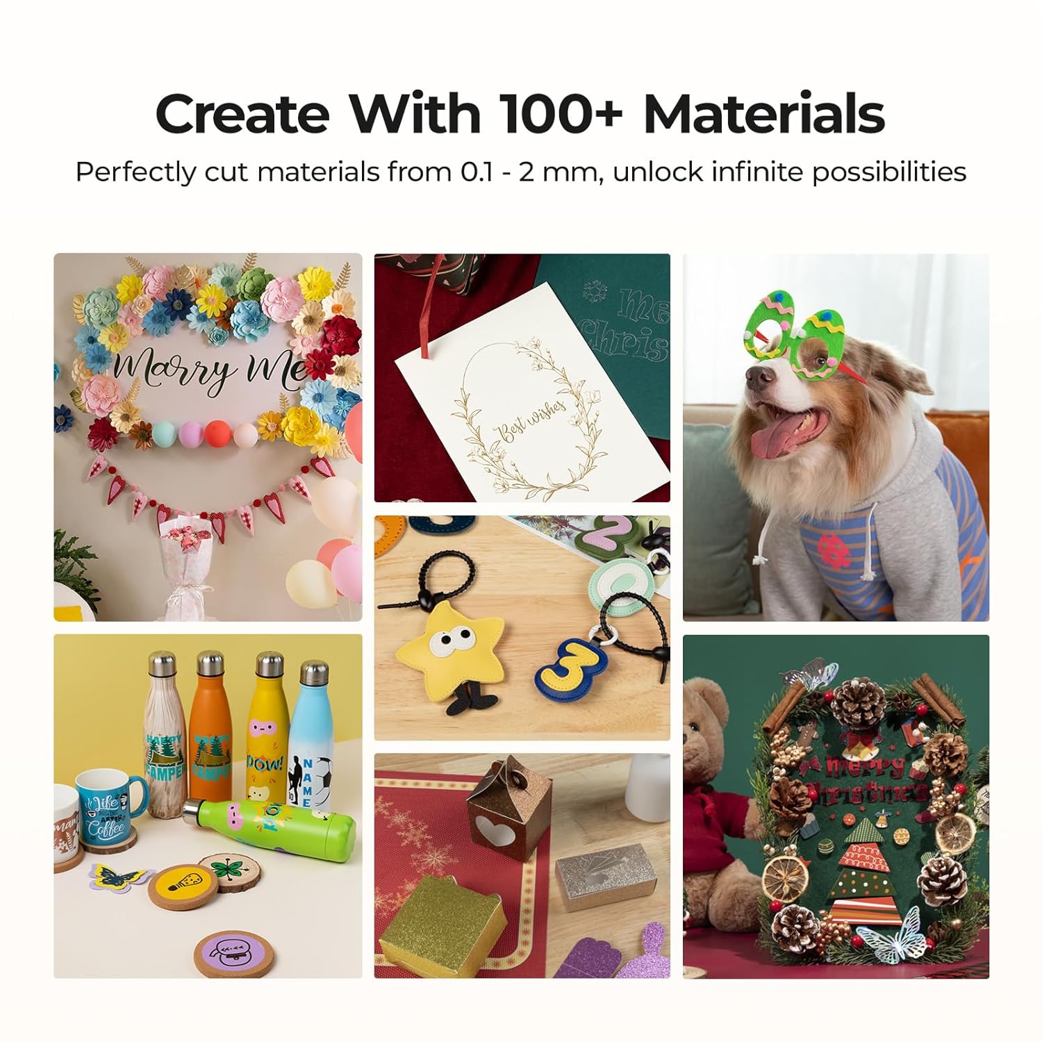 - 5 IN 1 MULTI-FUNCTION: Not only has fine-cutting, writing or drawing functions (tools included), this vinyl cutter machine also compatible with deep cutting, scoring and foil printing (tools sold separately). Whether you’re customizing t-shirts, making intricate cards, scrapbook pages, personalizing 3D boxes, or creating home decor, this machine can truly meet your craft needs and unlimited creativity