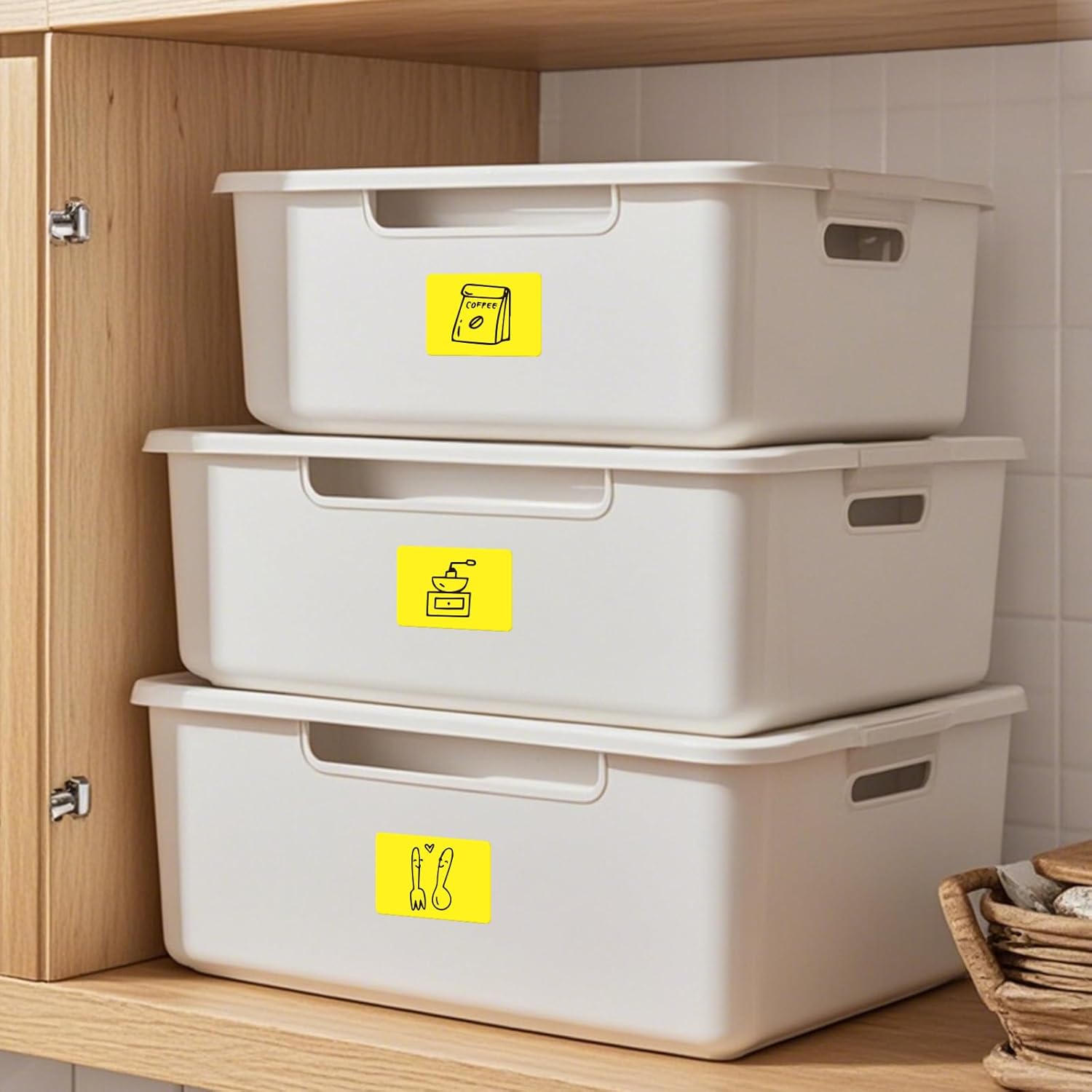 Rectangle Label Stickers 3×2 Inch Vinyl Removable Yellow Sticker Waterproof Writable File Folder Moving Labels for Boxes Home Office Labeling 40 PCS