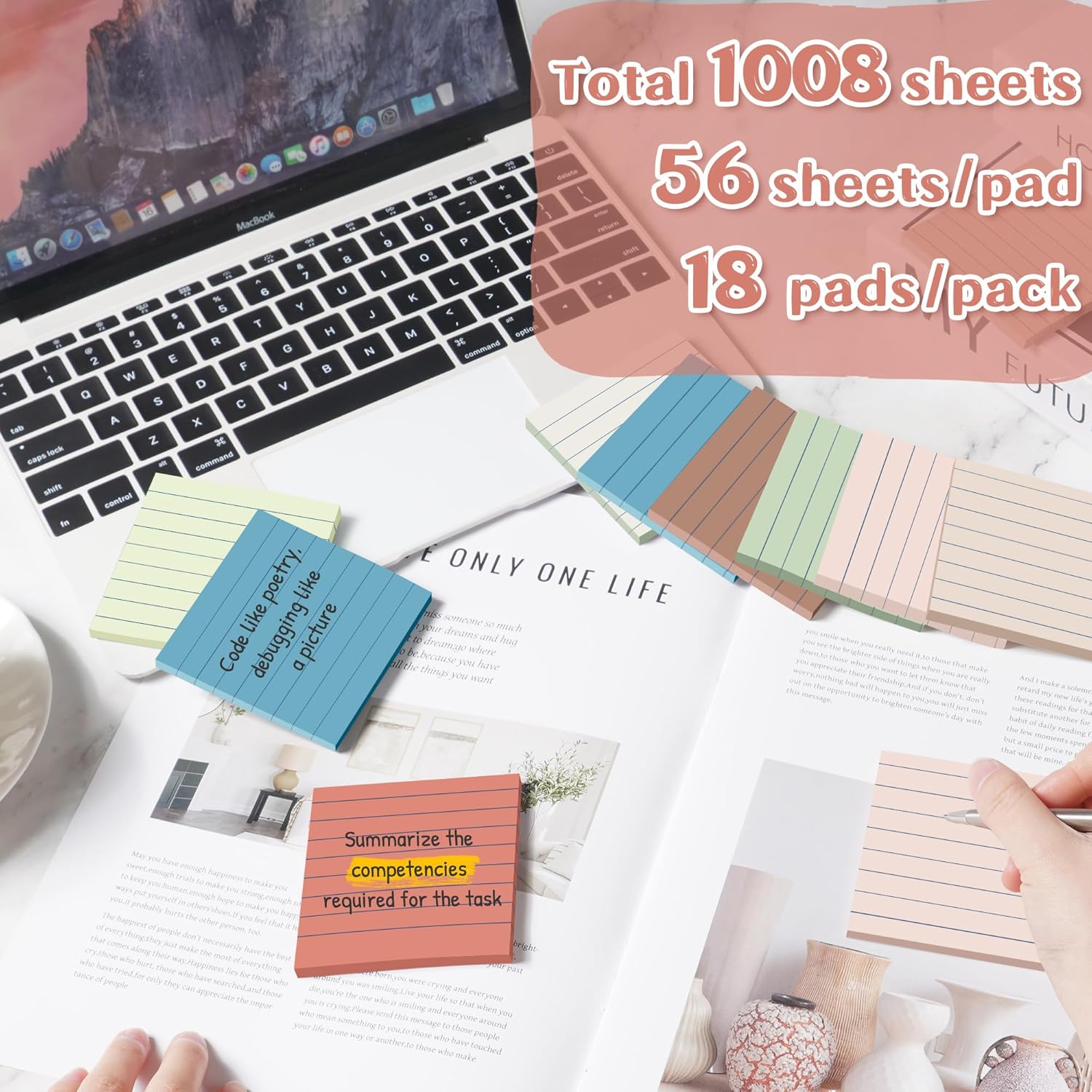 - 【LINED STICKY NOTES】Portable Size 3 in x 3 in, 18 Pads/Pack, 56 Sheets/Pad, Valuable Set.
