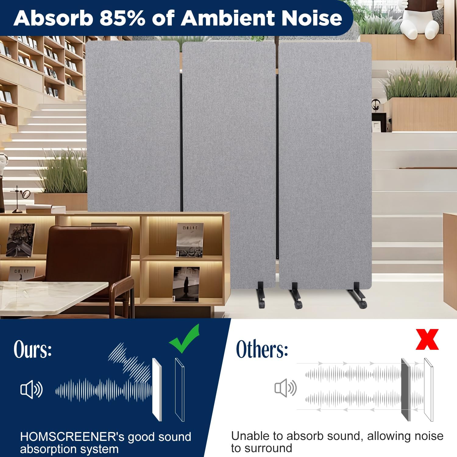 - Excellent Acoustic Room Divider: Designed to create a quieter work or study environment, our partition wall is constructed with two layers of ECO-friendly, flame-retardant PET material wrapped in fabric. This construction absorbs a minimum of 85% of noise, providing a distraction-free space. The robust coating on the metal base is rust-proof, ensuring durability