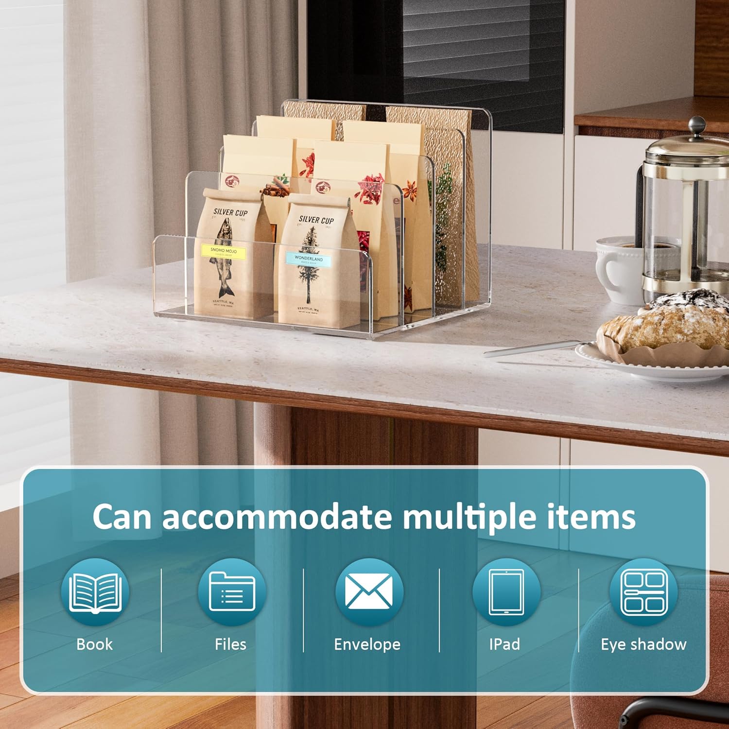 Acrylic File Holder 4 Compartment, Clear Desk File Organizer, Acrylic Organizer for Books, Phone, Ipad, Envelope, Notebook, Calculator