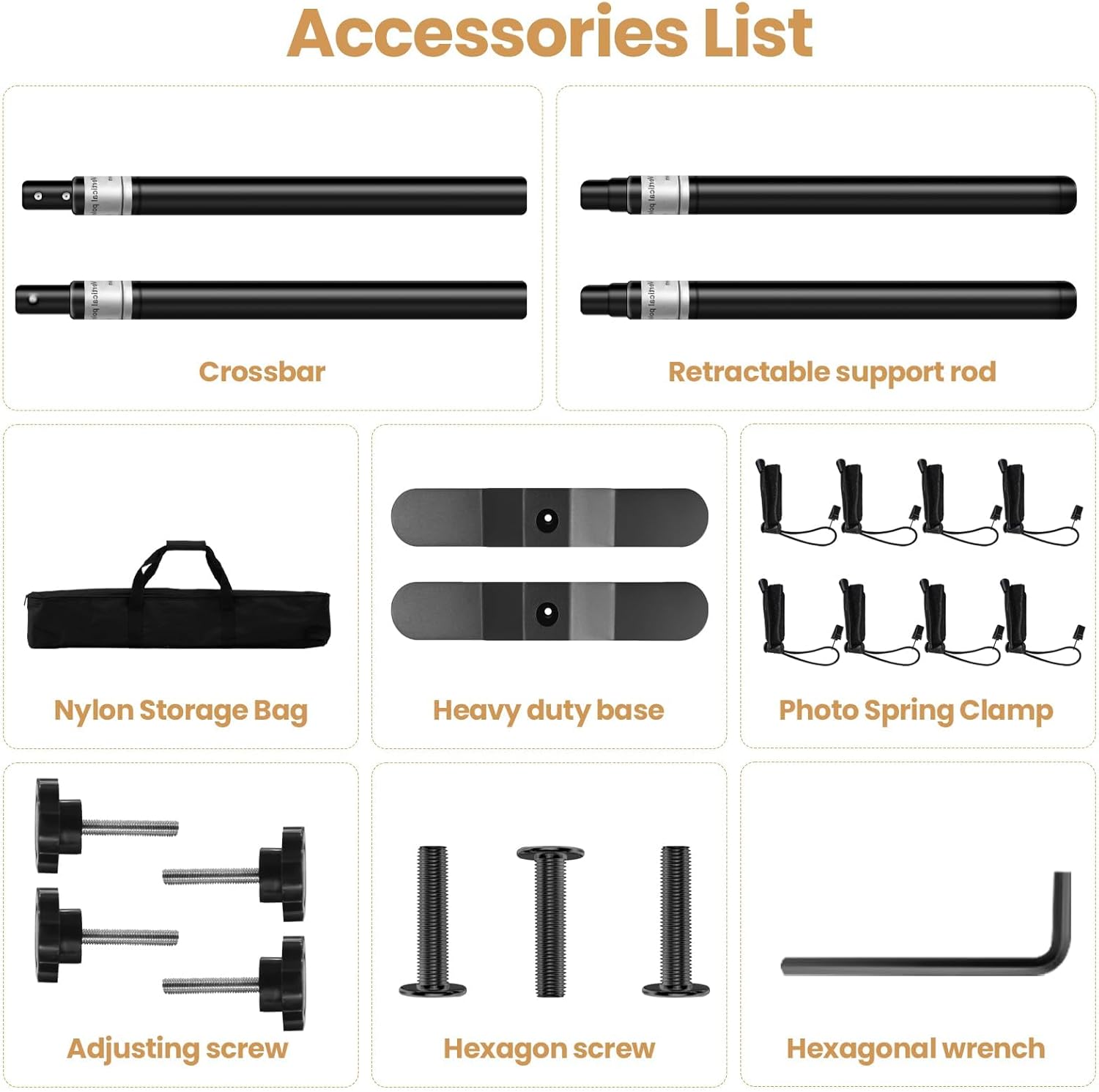 - 【Heavy Duty Metal Base】: This background stand is made of solid heavy iron, with a powerful load capacity of 16 pounds. The base area is widened and thickened, which is more stable than similar products on the market, and suitable for different kinds of backdrops