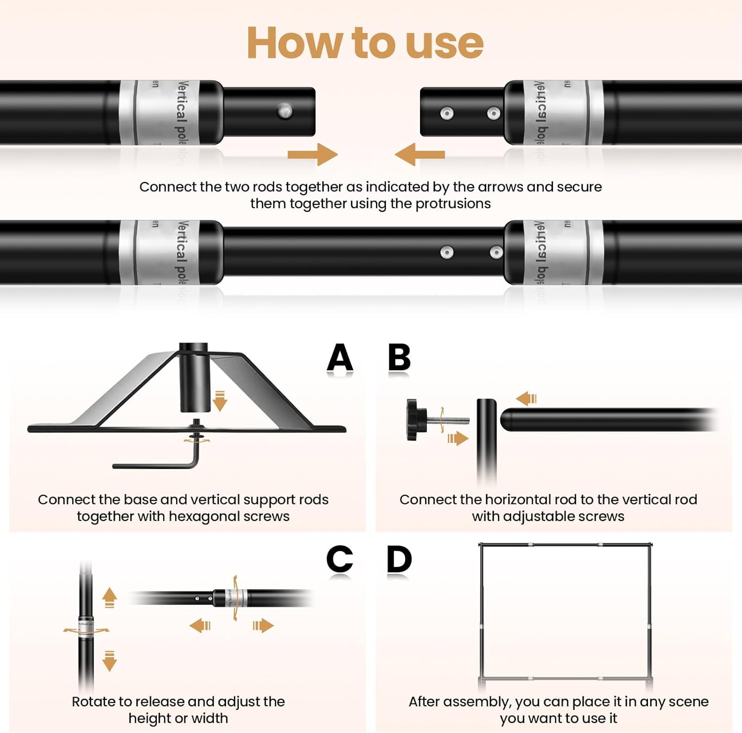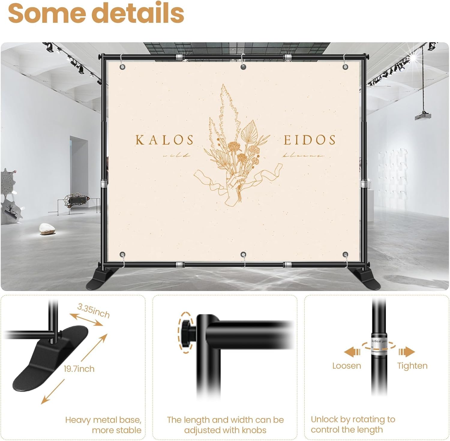 - 【Adjustable Frame】: The telescopic banner stand is suitable for multiple size, They are all telescopic and can be infinitely adjusted to match the size you need, Height adjustable (Min 3.4ft - Max 10ft), width adjustable (Min 6.2ft - Max 10ft).