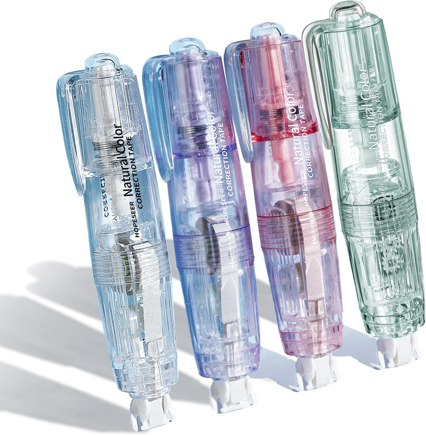 White Retractable Correction Tape, 4PCS Correction Dispensers Pre-Loaded, Cute Pull-Out Pen-Shaped Applicator, Anti-Break Tape for Office Supplies (Transparent, Green, Pink, Purple)