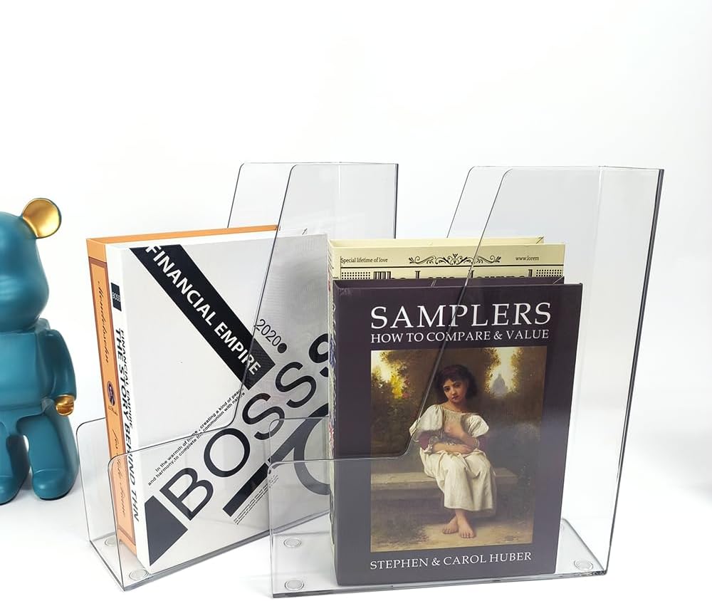 Vertical File Holder, 4 pack Clear Plastic Document Organizer and Clear Magazine Organizer, Multi-purpose Document Organizer for Home Office