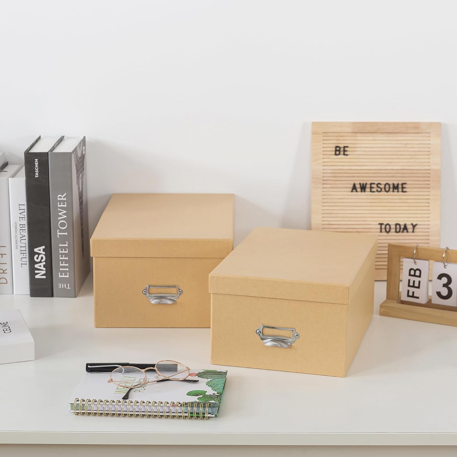 - FUNCTIONAL DESIGN ACCENTS: Equipped with silver drawer pulls and label holders, these storage boxes with lids marry form with function. The metal accents not only add a refined touch but also allow for easy access and organization. Effortlessly create a cataloged storage system with the built-in label holder.