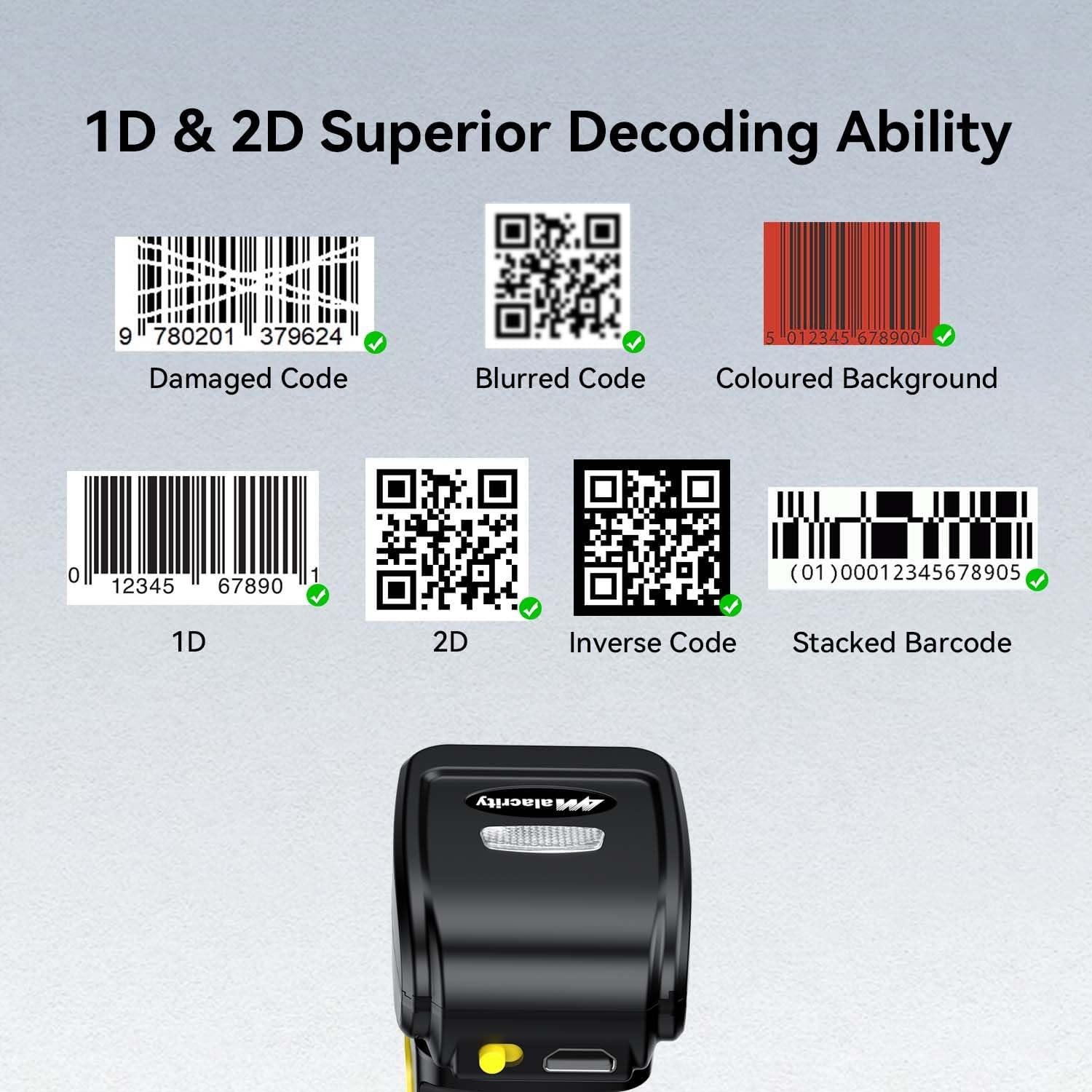 Alacrity Wearable 1D/2D Wireless Barcode Scanner,3-in-1 Mini Ring with Bluetooth,2.4GHz Wireless,and Wired USB Connectivity for PC,Laptop,Tablet,Phone