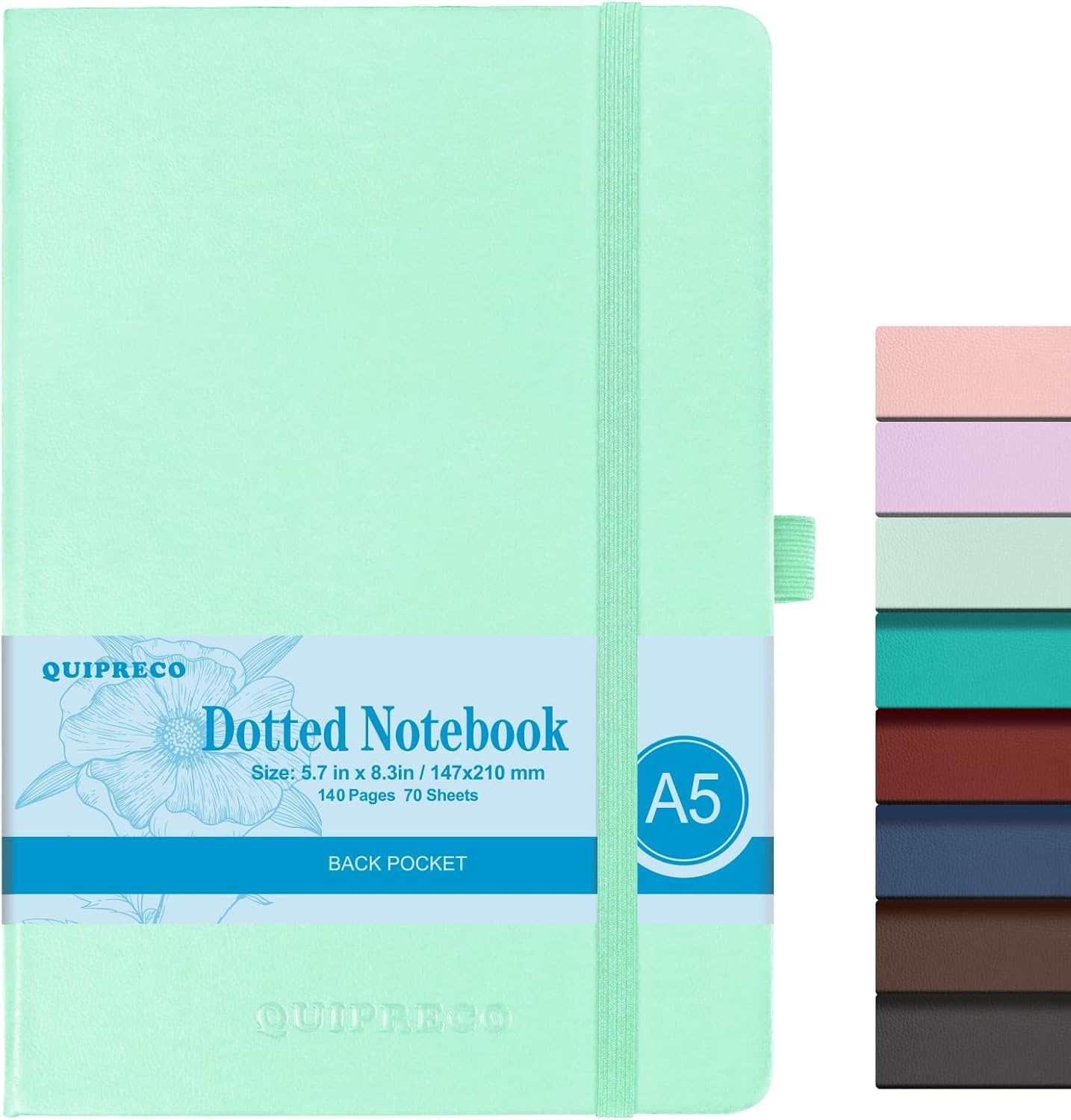 Bullet Dotted Hardcover Journal Notebook, A5 140 Pages 120Gsm Thick Paper for School,Note Taking,Work,Diary,5.7''*8.3'',Light Green
