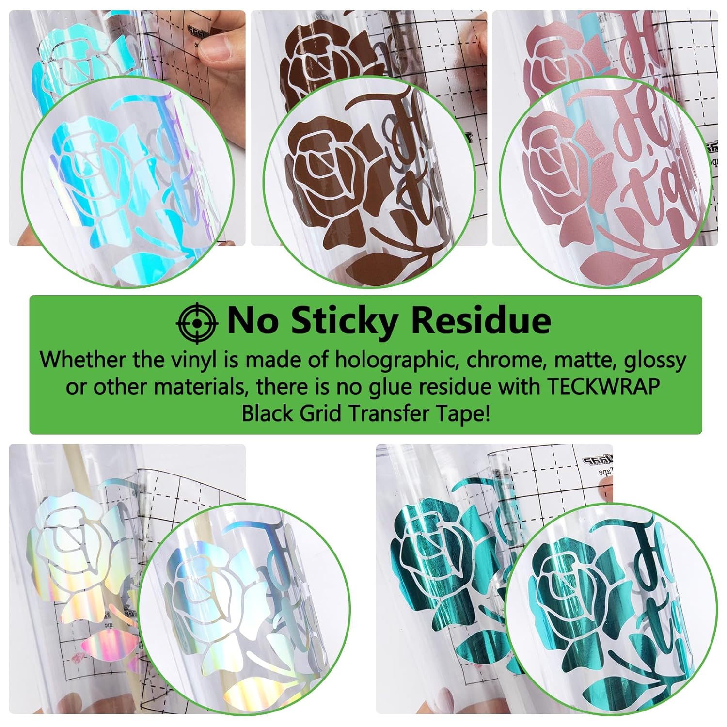 - No Sticky Residue Left Behind: TECKWRAP transfer tape for vinyl is the solution to the sticky residue that transfer tapes often leave on your vinyl or the applied surface. It's crafted to eliminate this problem, ensuring no sticky residue is left after the transfer