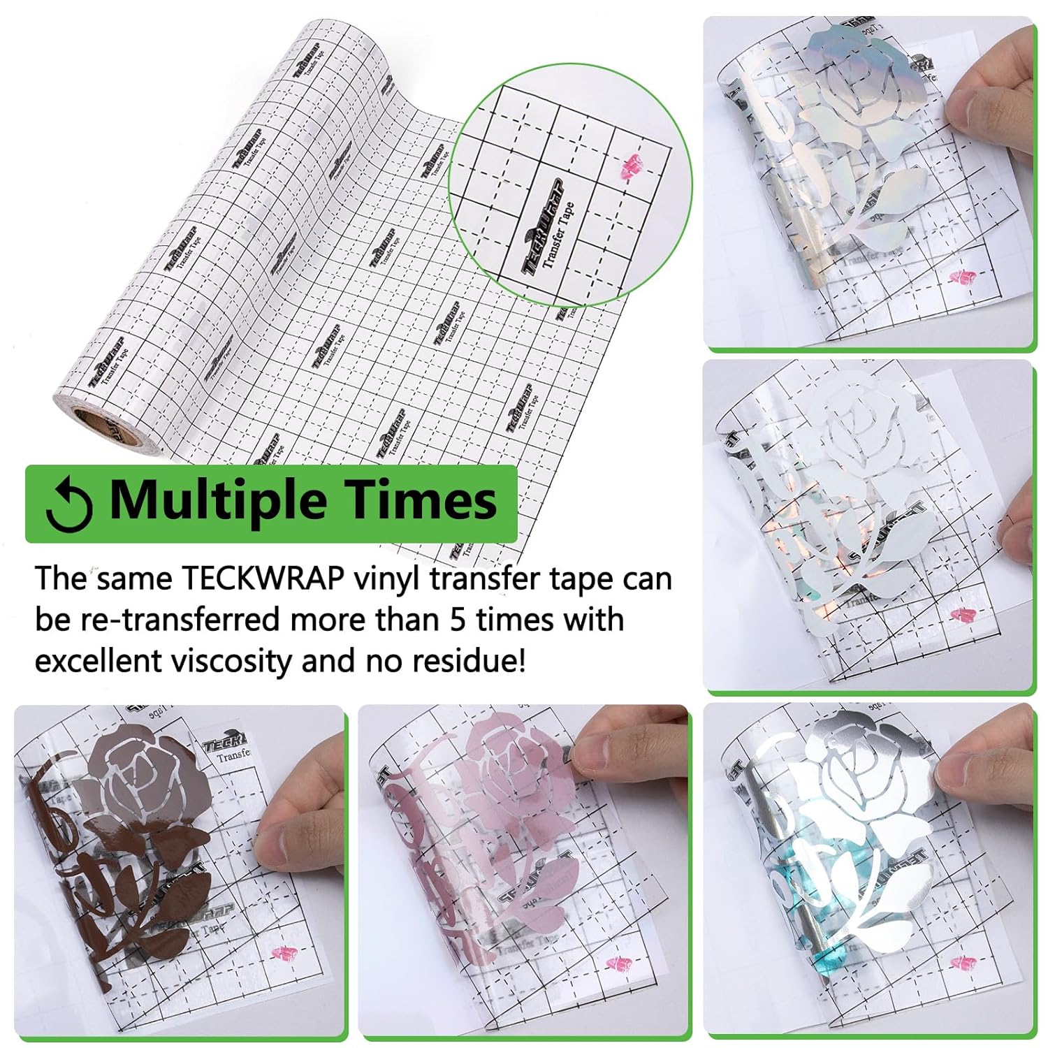 TECKWRAP Transfer Tape for Vinyl - 12" x 32FT Vinyl Transfer Paper for Permanent Vinyl, Stickers, Decals, Signs, Windows, Alignment Grid & Clear