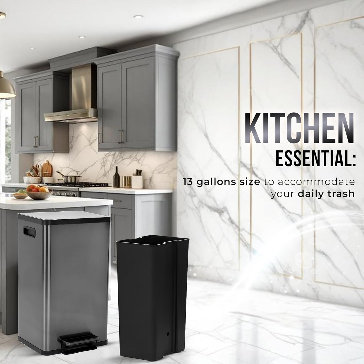 Simpli-Magic 13.2 Gallon (50L) Step Trash Can – Kitchen Garbage Can with Slow-Close Lid – Odor Control, Hands-Free, Easy to Clean, Brushed Stainless Steel