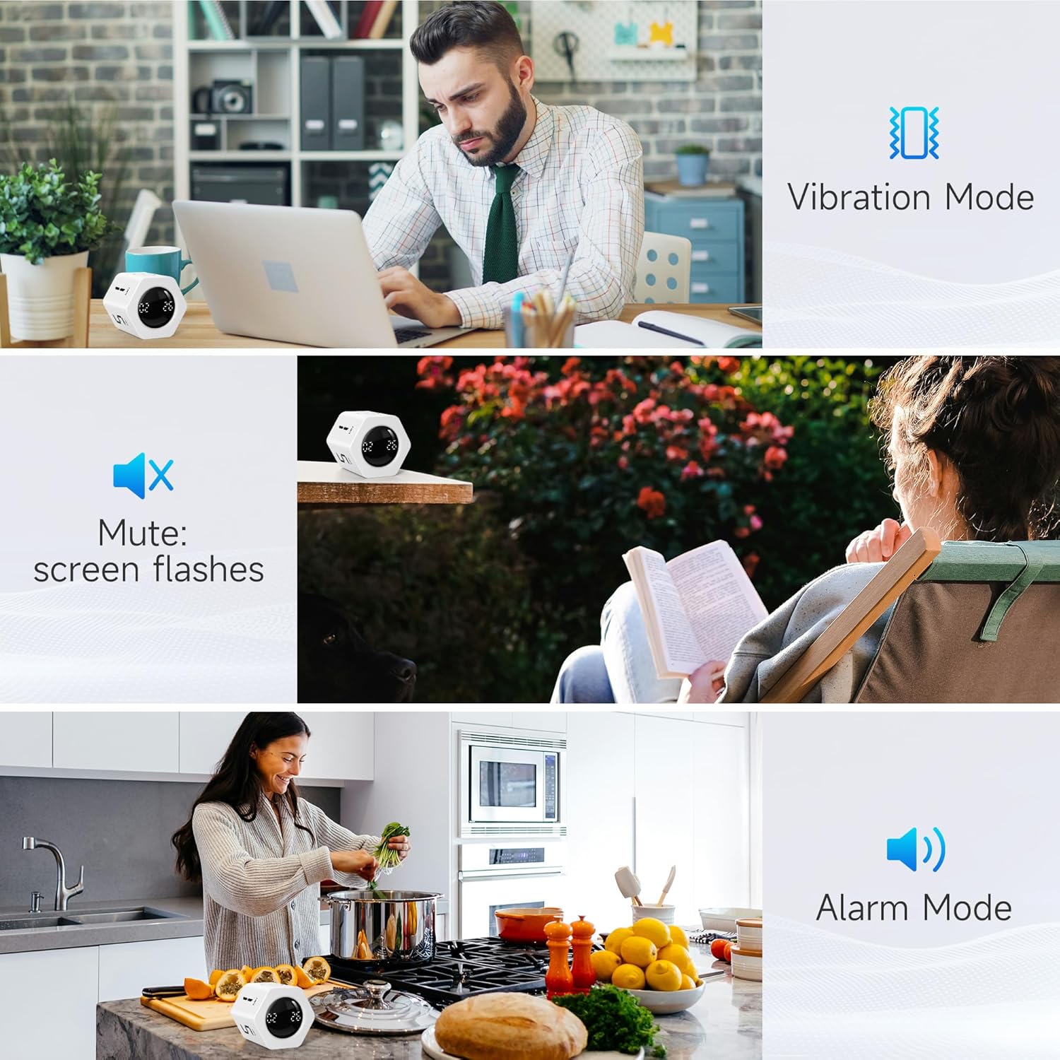 - đăApplication ScenarioăPerfect for work, school, office, and kitchen use, this cube timer features a stylish and modern design. It makes an excellent gift for students, friends, colleagues, families, or individuals with ADHD. Ideal for various scenarios such as work/office, back-to-school, college/classes/study, workouts, and kitchen tasks.