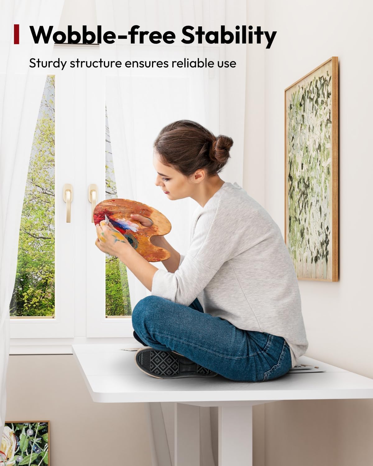 - Exceptional Stability: The sit stand desk is constructed with robust steel, ensuring exceptional stability and durability. The industrial-grade steel frame further reinforces its strength.
