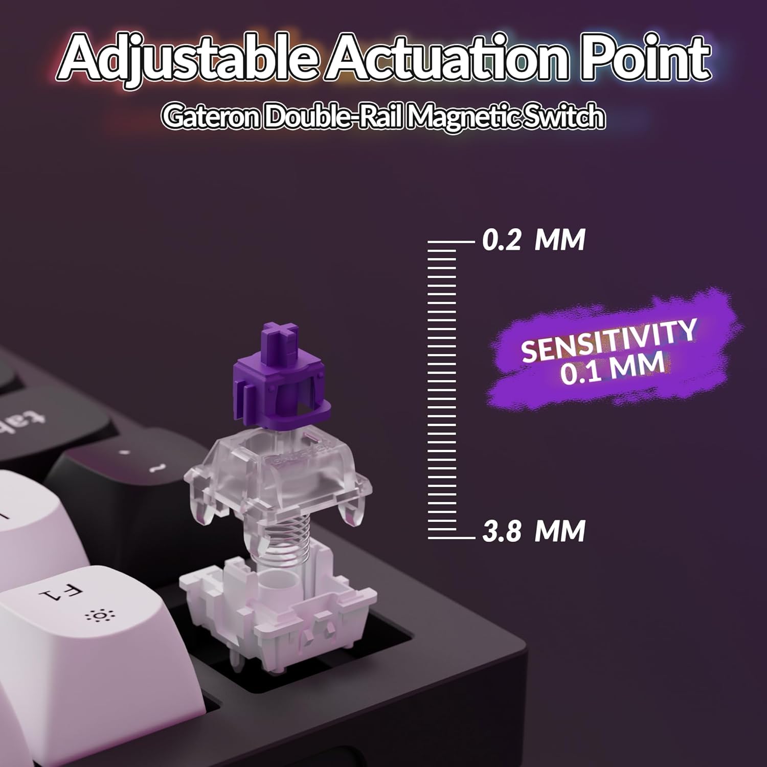 - Adjustable Actuation Point & Analog Mode Fine-tune each key's actuation from 0.2 to 3.8 mm with 0.1 mm sensitivity for precision. Analog mode converts key press depth into variable speeds or intensities, perfect for racing and sports games, offering nuanced control for a dynamic experience.