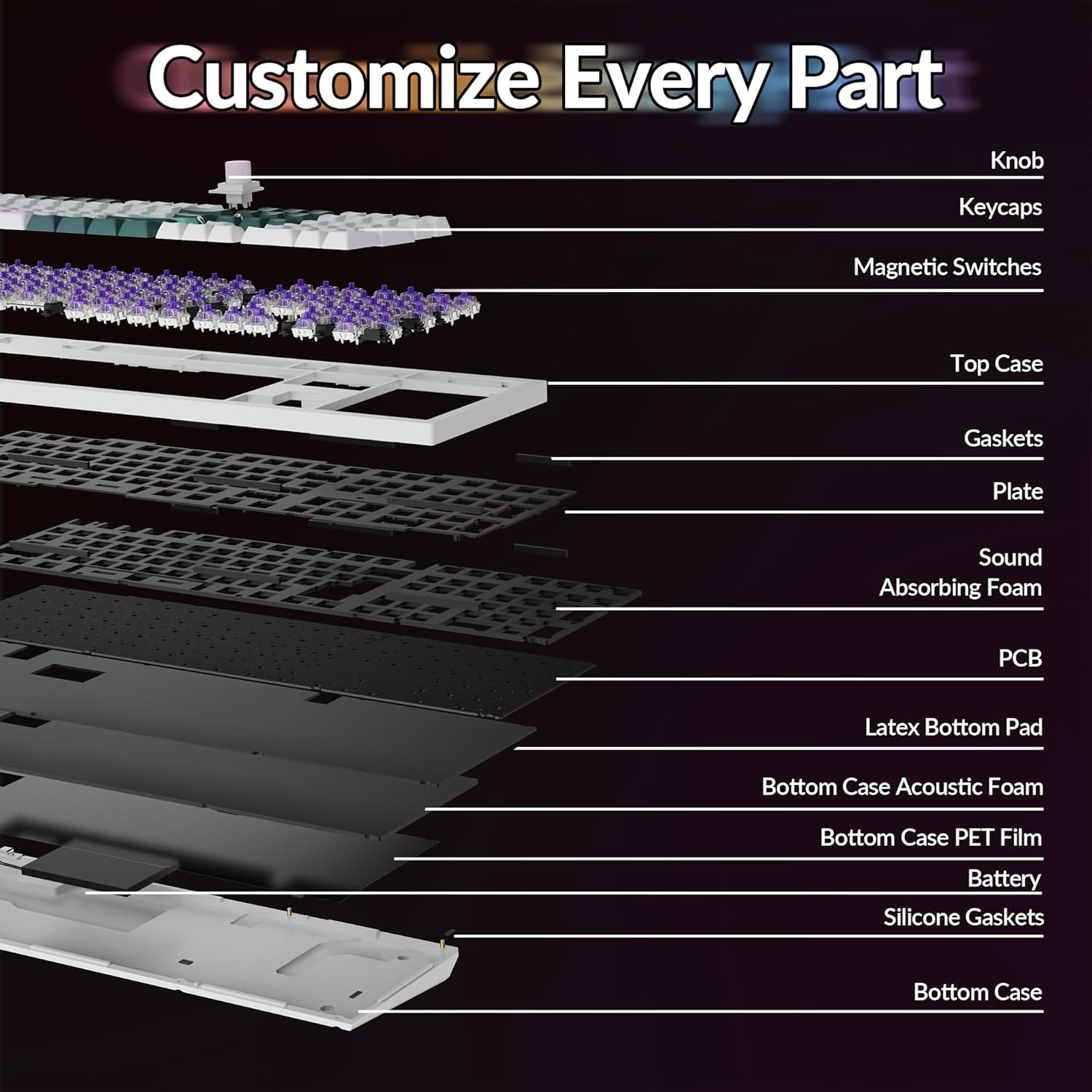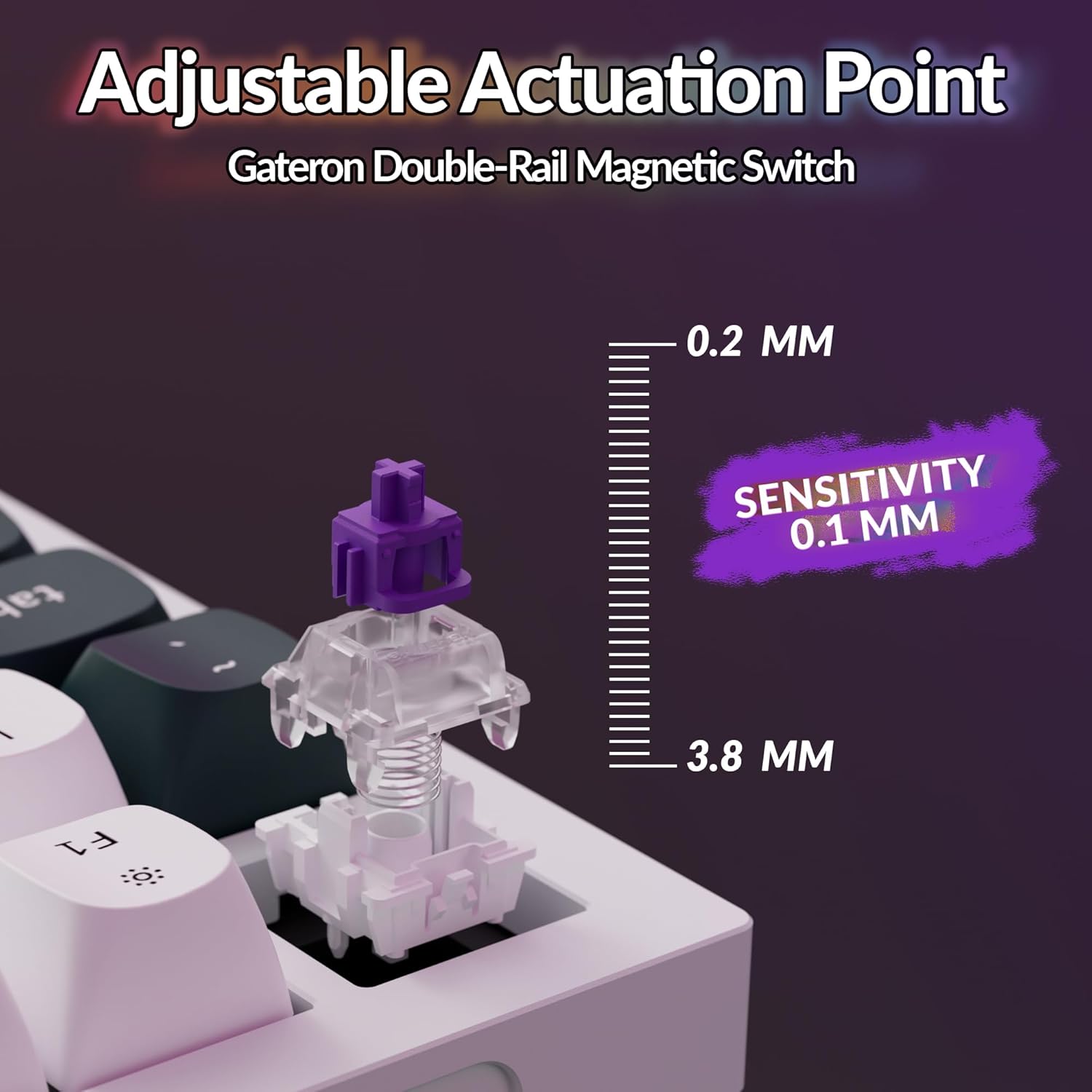 - Adjustable Actuation Point & Analog Mode Fine-tune each key's actuation from 0.2 to 3.8 mm with 0.1 mm sensitivity for precision. Analog mode converts key press depth into variable speeds or intensities, perfect for racing and sports games, offering nuanced control for a dynamic experience.