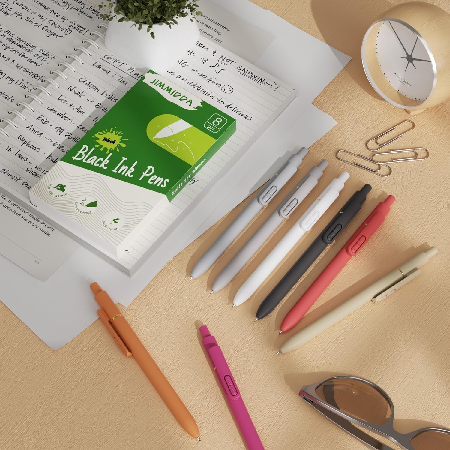 - Fashion & Practical Gel Pens: The Whole set includes a 8-pack of quick-drying gel pens with a modern minimalist design to suit your needs Daily use and replacement needs. They are great retractable pens for aesthetic school supplies, office supplies, journaling, note taking and planning.