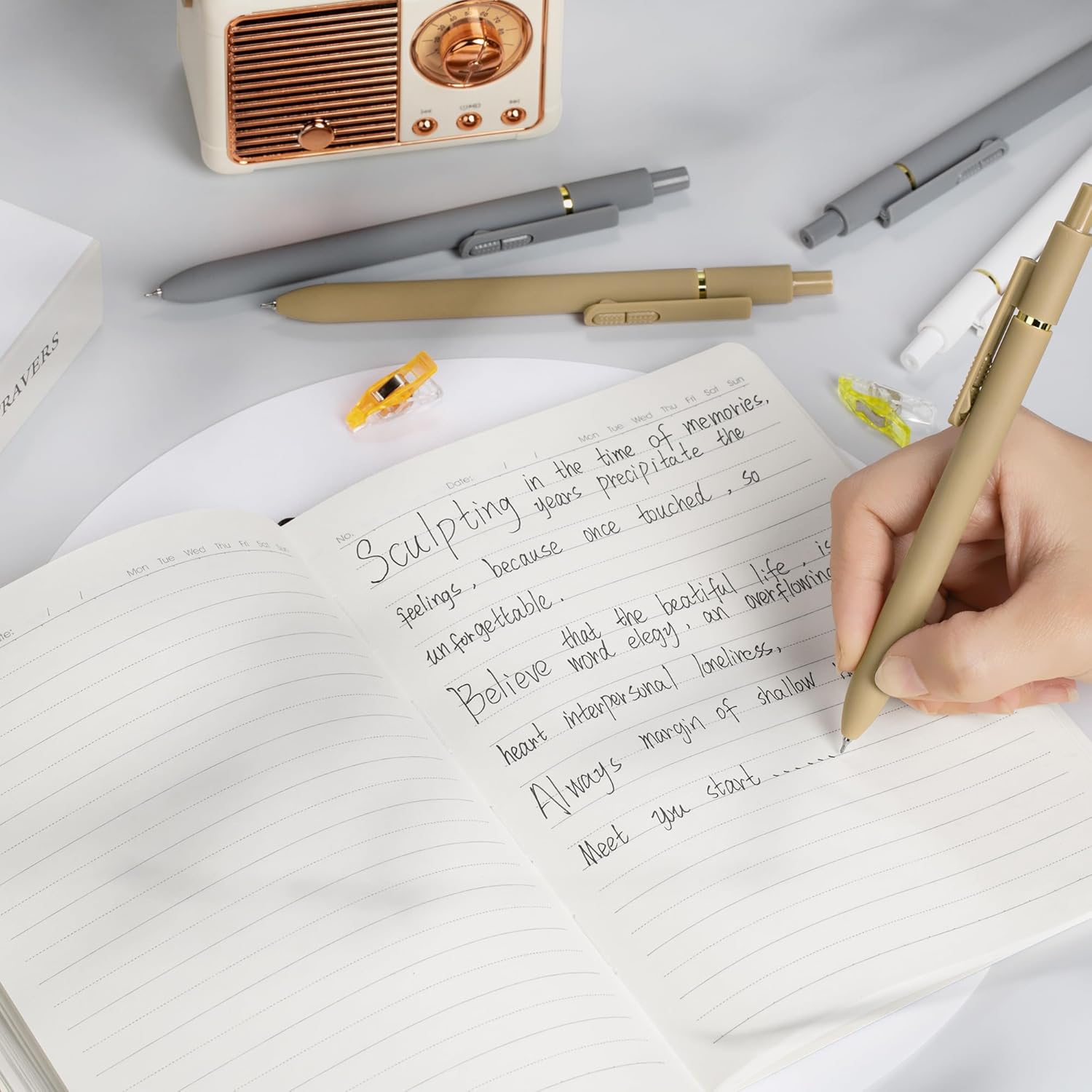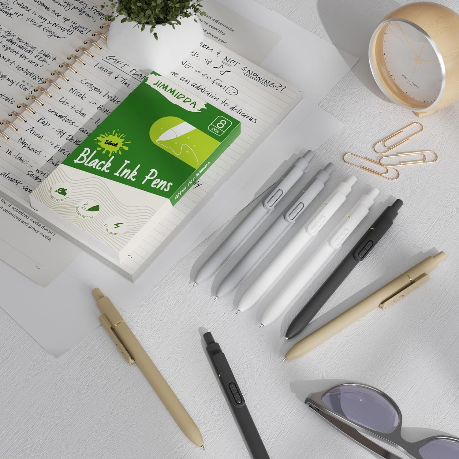 - Fashion & Practical Gel Pens: The Whole set includes a 8-pack of quick-drying gel pens with a modern minimalist design to suit your needs Daily use and replacement needs. They are great retractable pens for aesthetic school supplies, office supplies, journaling, note taking and planning.