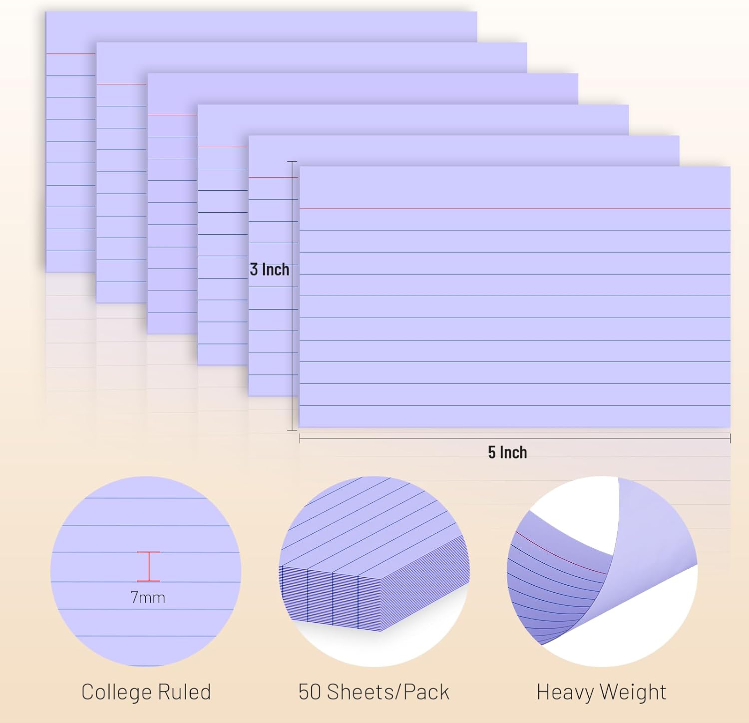 - Bulk Value Pack & Organization Efficiency: Get 6 packs of 50 sheets each (300 total) purple ruled index cards. Thick paper resists bleeding and curling, ideal for highlighters, pens, and markers