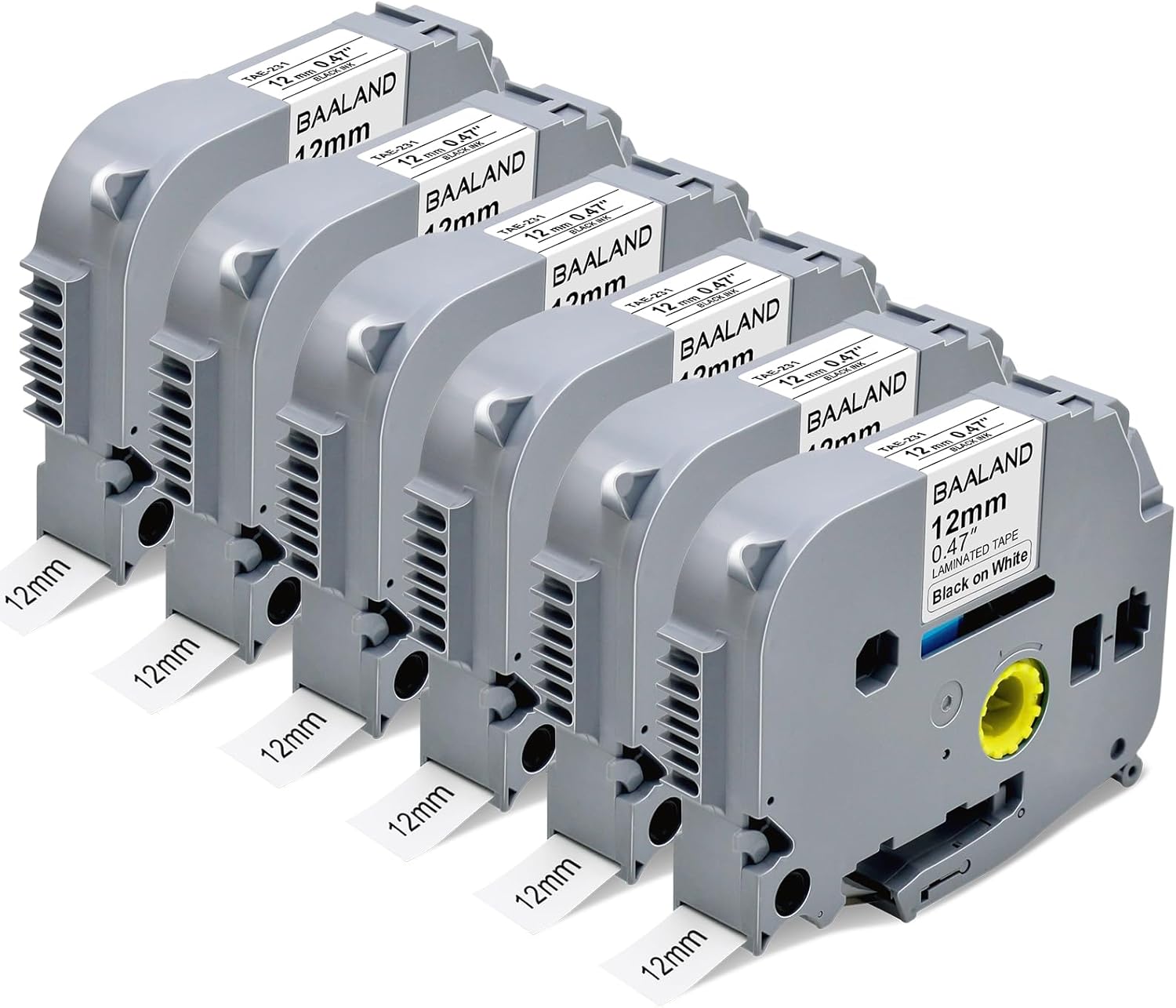 - BAALAND compatible label maker tape Tze231, black on white; width: 12mm / 0.47 inch; length: 8 meter / 26.2 feet, 6-pack total 157.2 feet